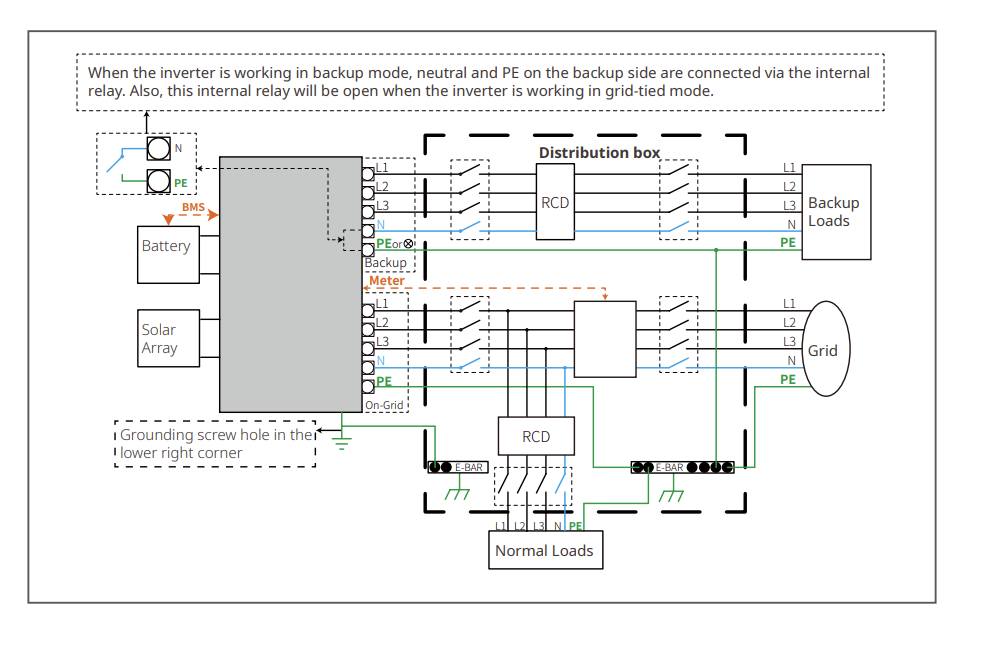 Graph9919 wrote: Sun Nov 26, 2023 12:09 am I found this diagram in a GoodWe manual (which is suspiciosly similar to Foxess, but better done) where the "how" is more clear. There needs to be a internal relay that bonds EPS N with EPS E when it's running in island/EPS mode.