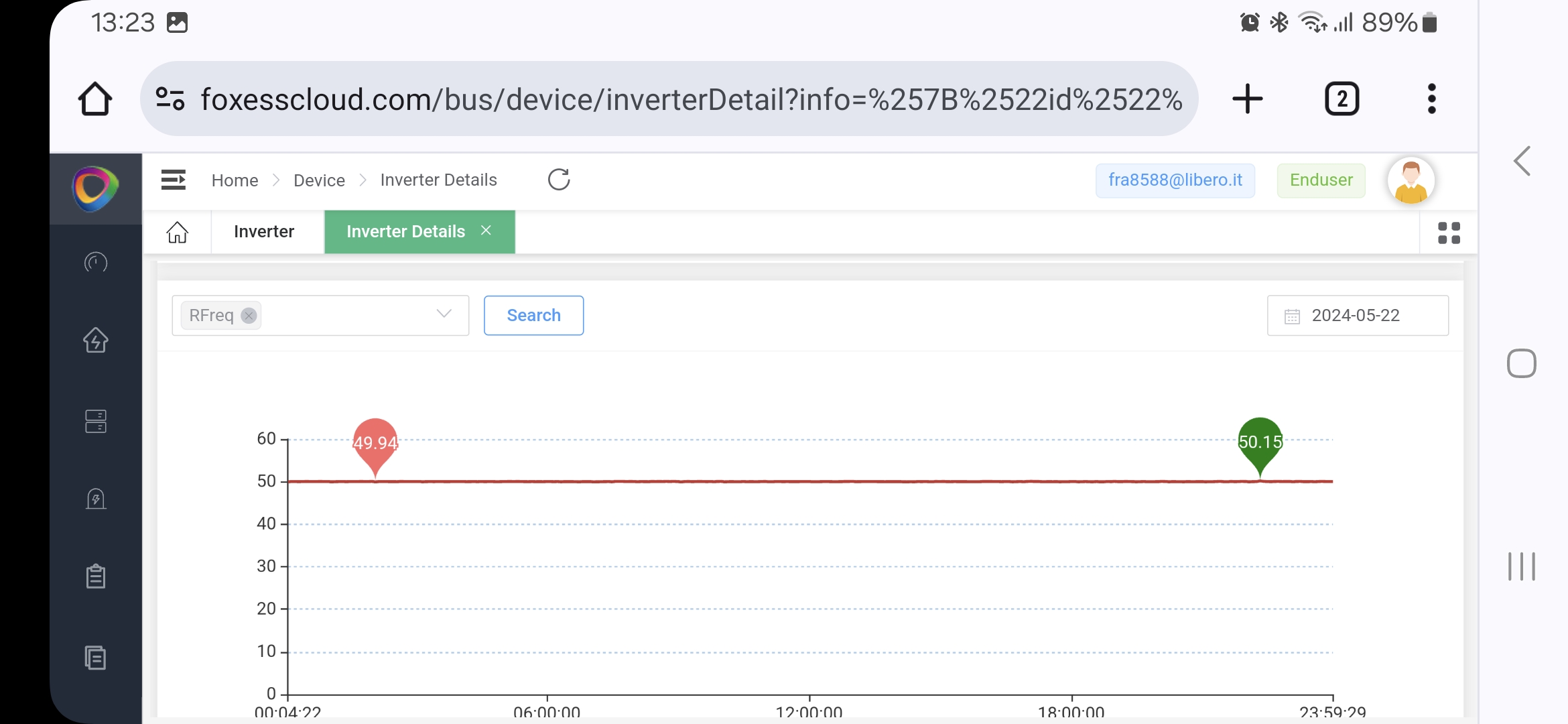 Could you look in the inverter on-grid settings under grid-para to see what you safety frequencies are set to Fac upper 1, Fac lower 1 and Fac upper 2, Fac lower 2 are set to (defaults are Fac1: high 52, low 47.5 - Fac2: high 52, low 47)