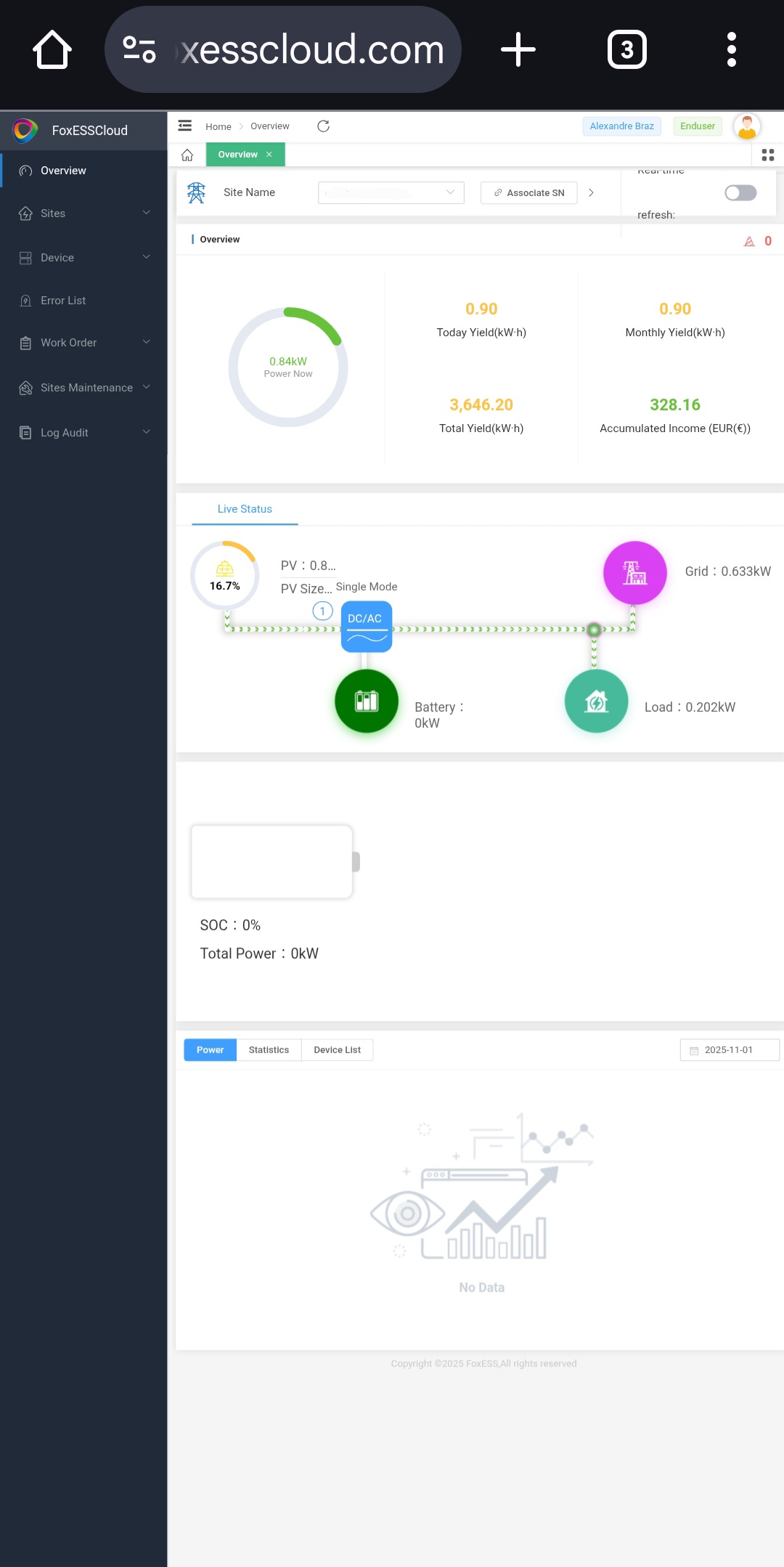 Re: FoxEss Cloud suddenly without overview chart info