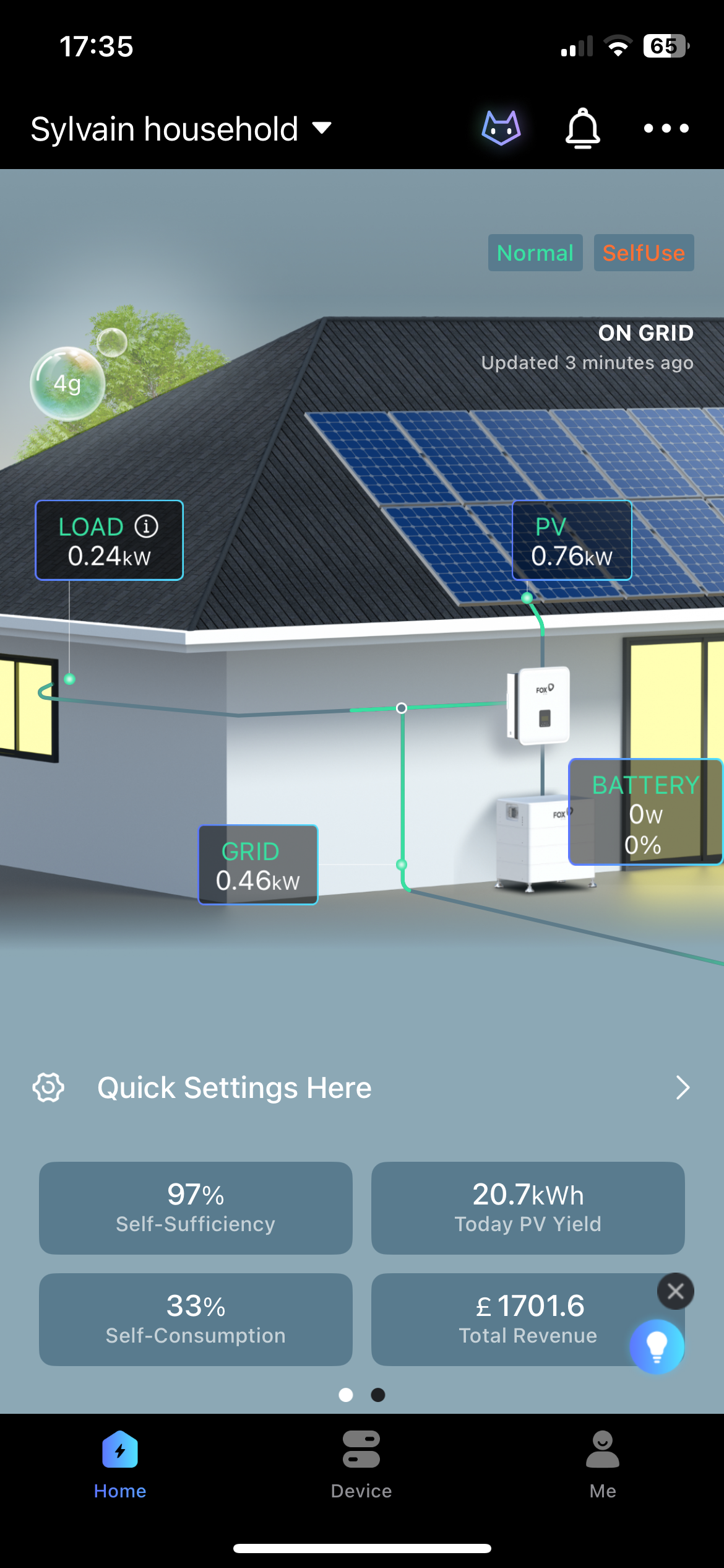 One issue though is that the stats of the battery (State of Charge and Current Power) are not showing on the home page of the app (first picture).