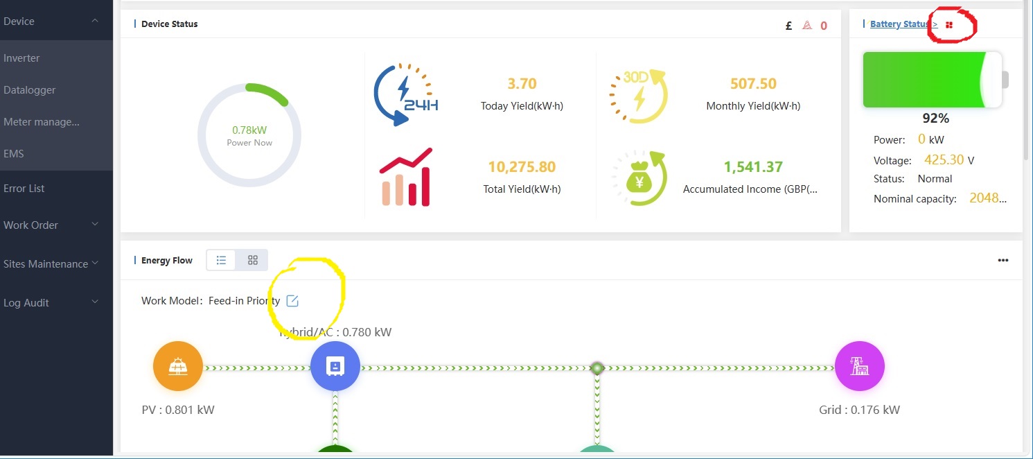 You can find a similar screen on the website but it's not the easiest to find it - go to the inverter details screen (which looks like the attached) - to get to mode scheduler click the item ringed in yellow, to get to the quick battery charge settings go to the item ringed in red.