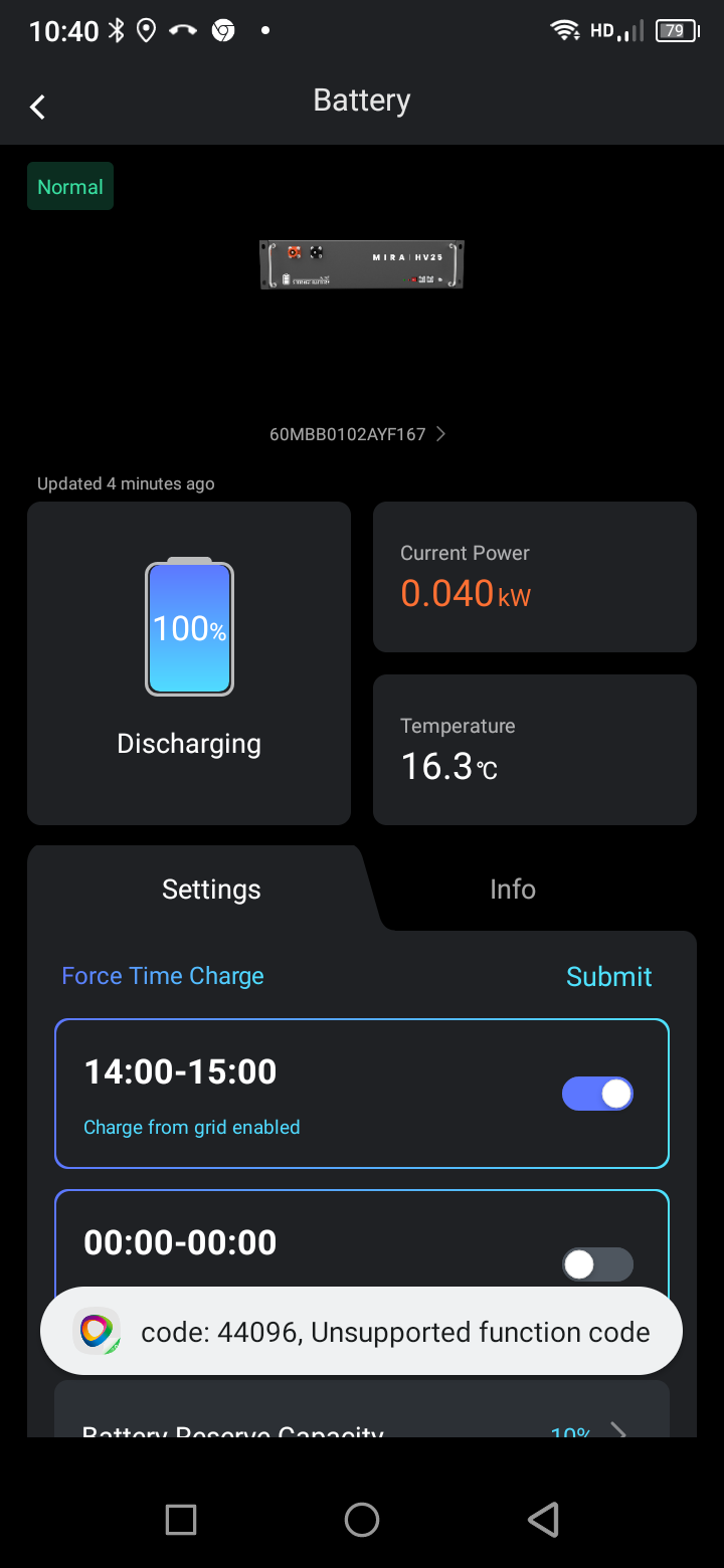 4TR wrote: Thu Sep 26, 2024 9:31 am Hi - Am getting a "40257, Parameters does not meet expectations" error on my Fox 2.0 APP. I am also not getting the force charge option on the foxcloud inverter details settings. I am concerned the battery will charge to 100% and then discharge to my EV in the charge window.