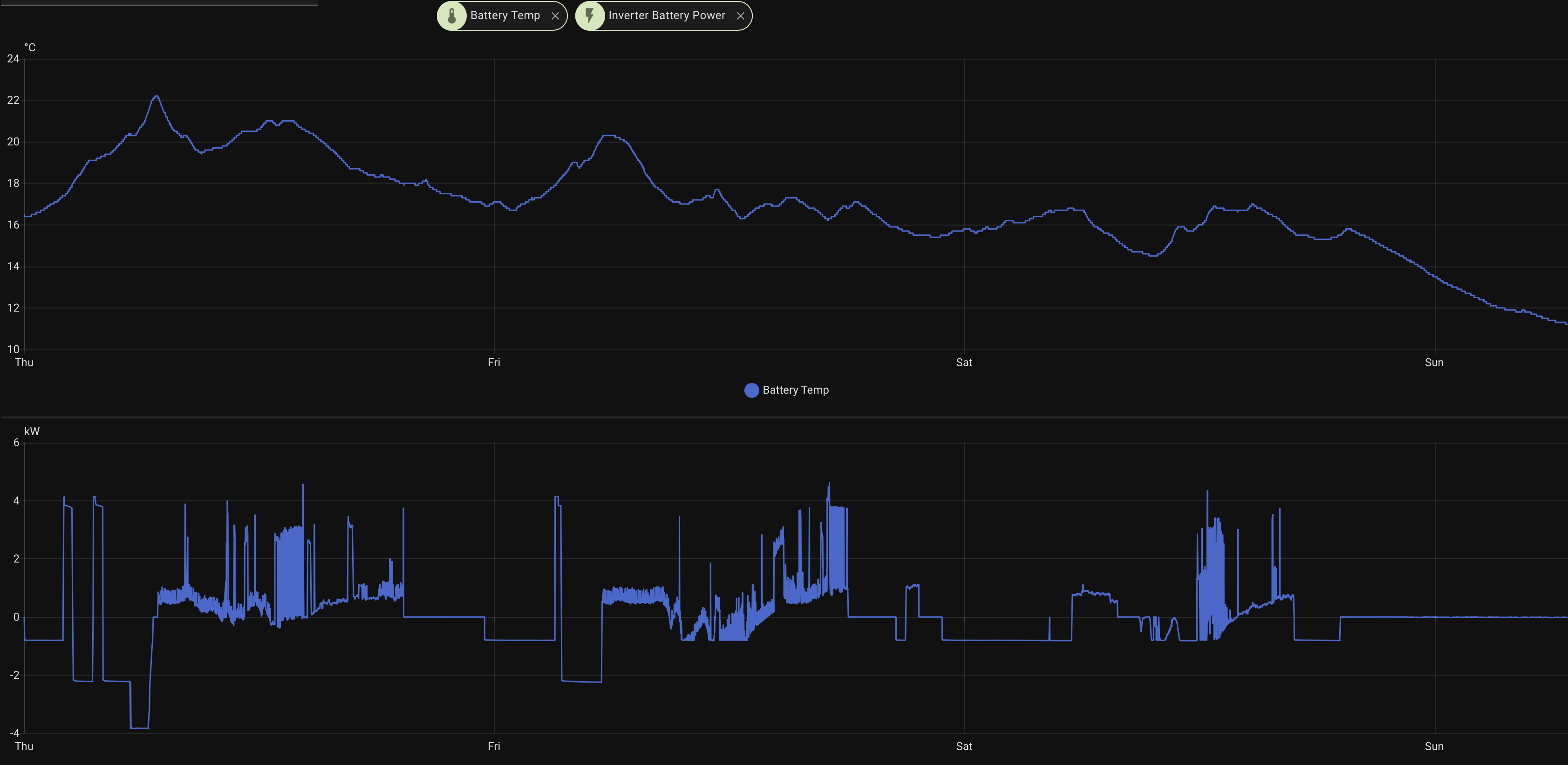 Now I know the battery goes into hibernation when it's too cold that does seem to explain everything. You'd think the inverter or battery would log some kind of state code when this happened but OK...
