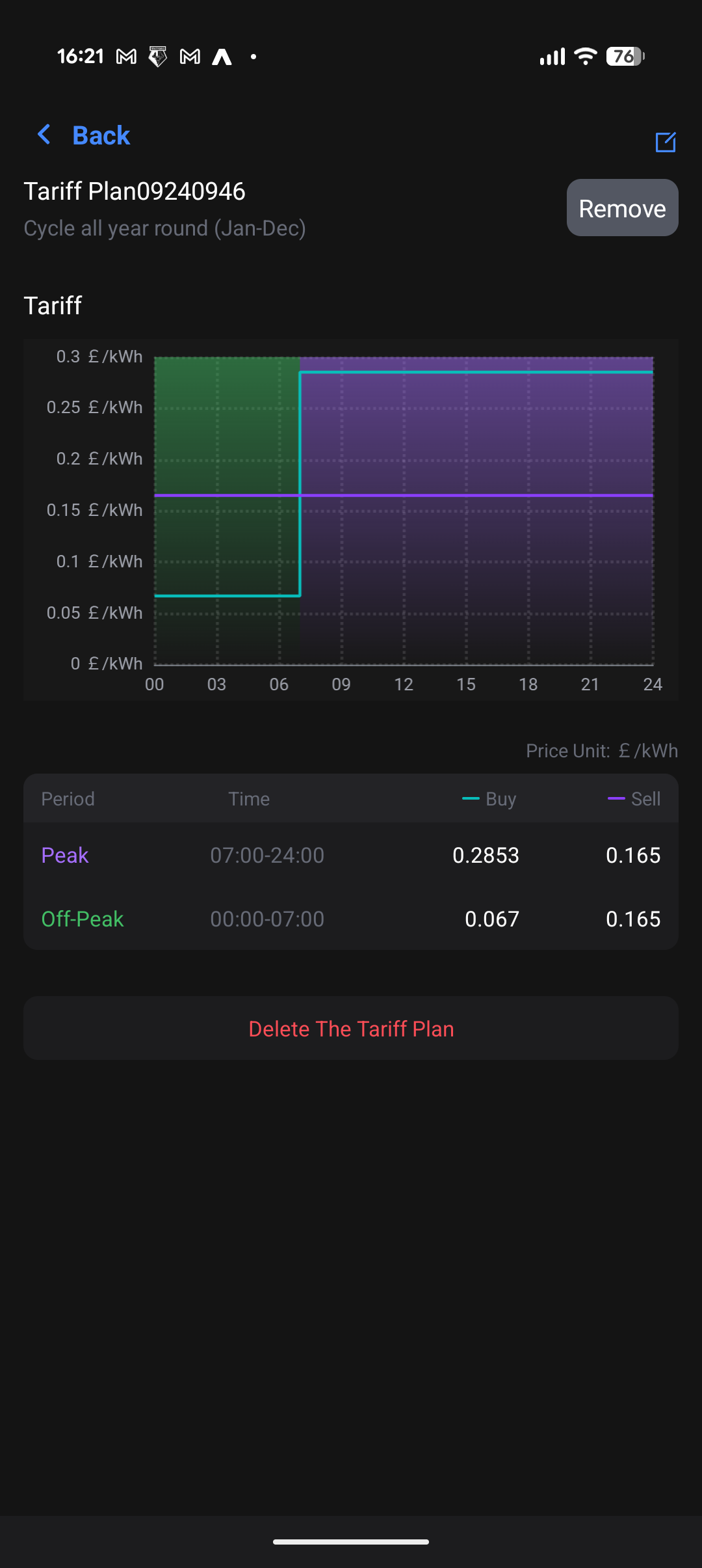 I have not setup any ToU tariff information, as this never was an option when I started out almost one year ago.