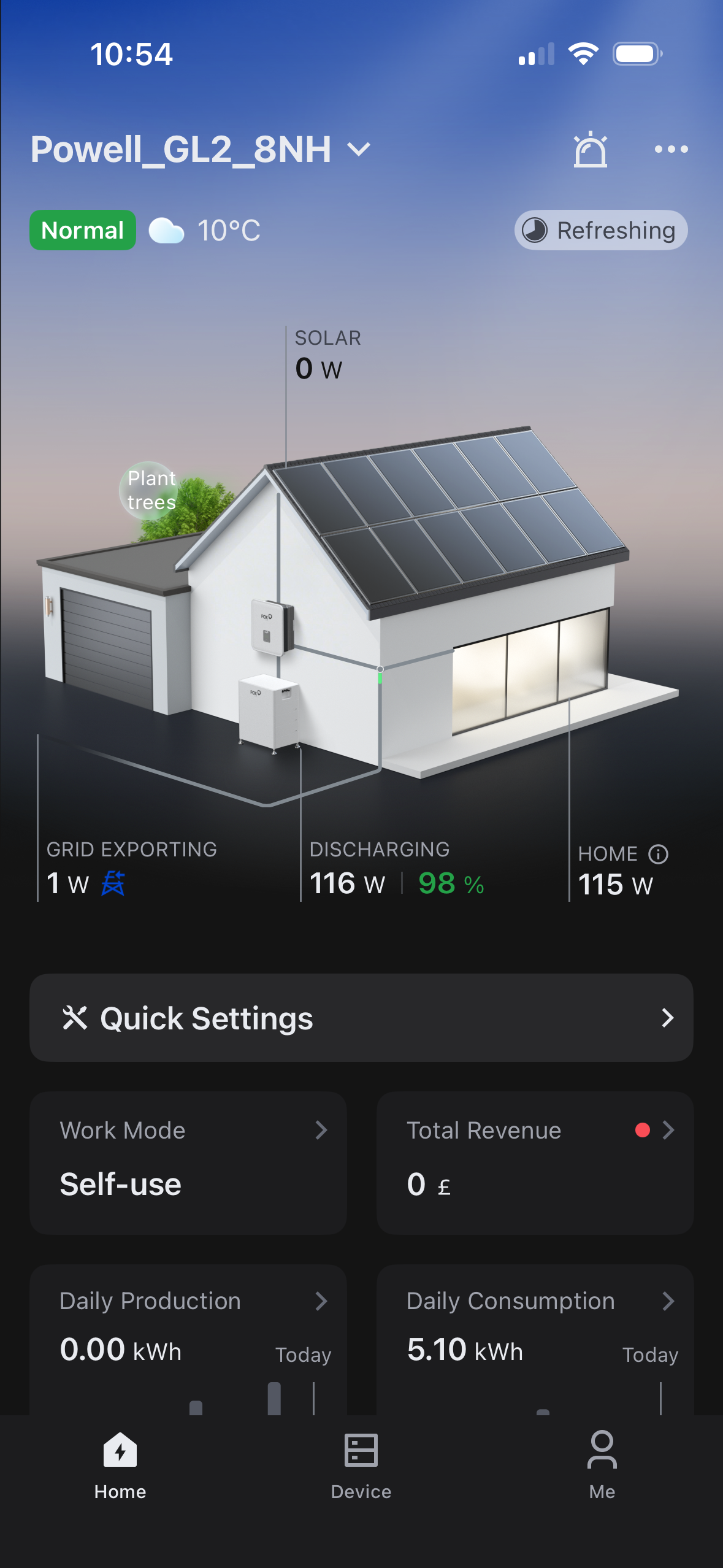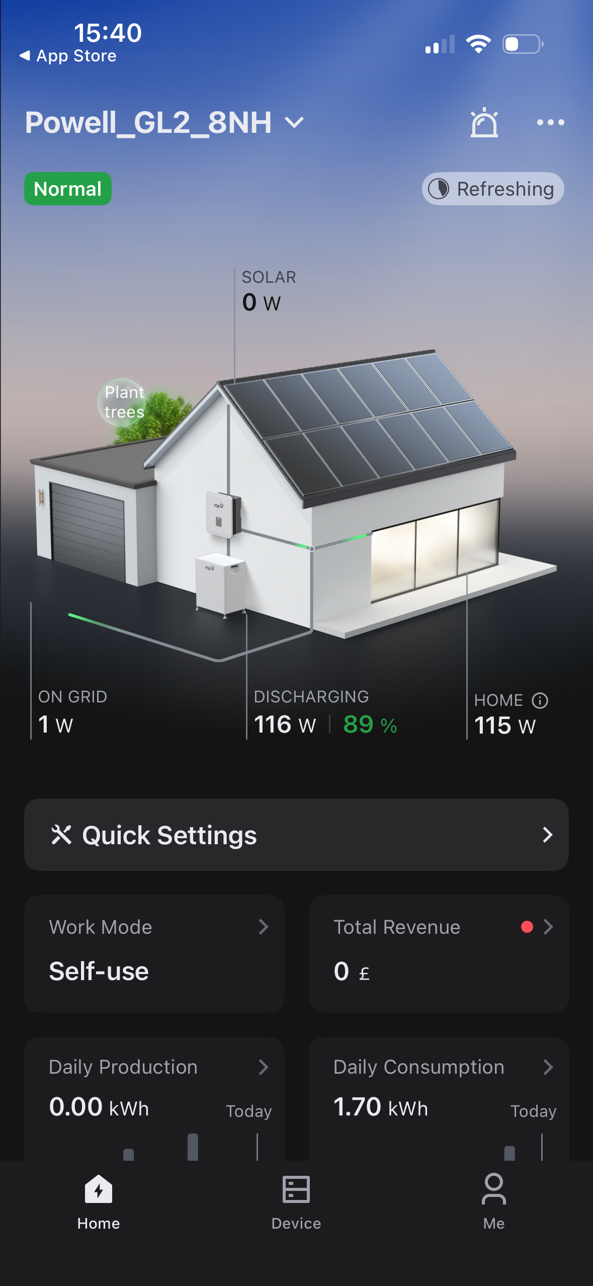 You may need therapy then, as it will always say refreshing because the datalogger is always uploading to Fox ESS servers so the web portal and app can always show fresh information.thepowellfamily wrote: ↑Sat Mar 07, 2026 11:34 am On reboot the app seems to be working BUT is still continually refreshing, which is a pain.