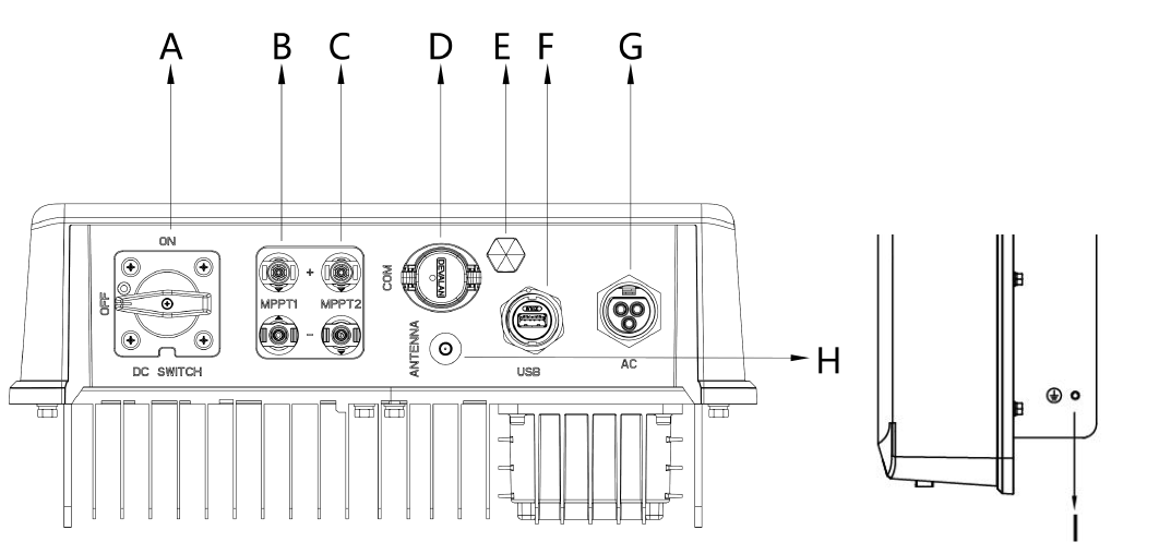 4. Switch the DC Isolators at the Inverter to OFF (2).