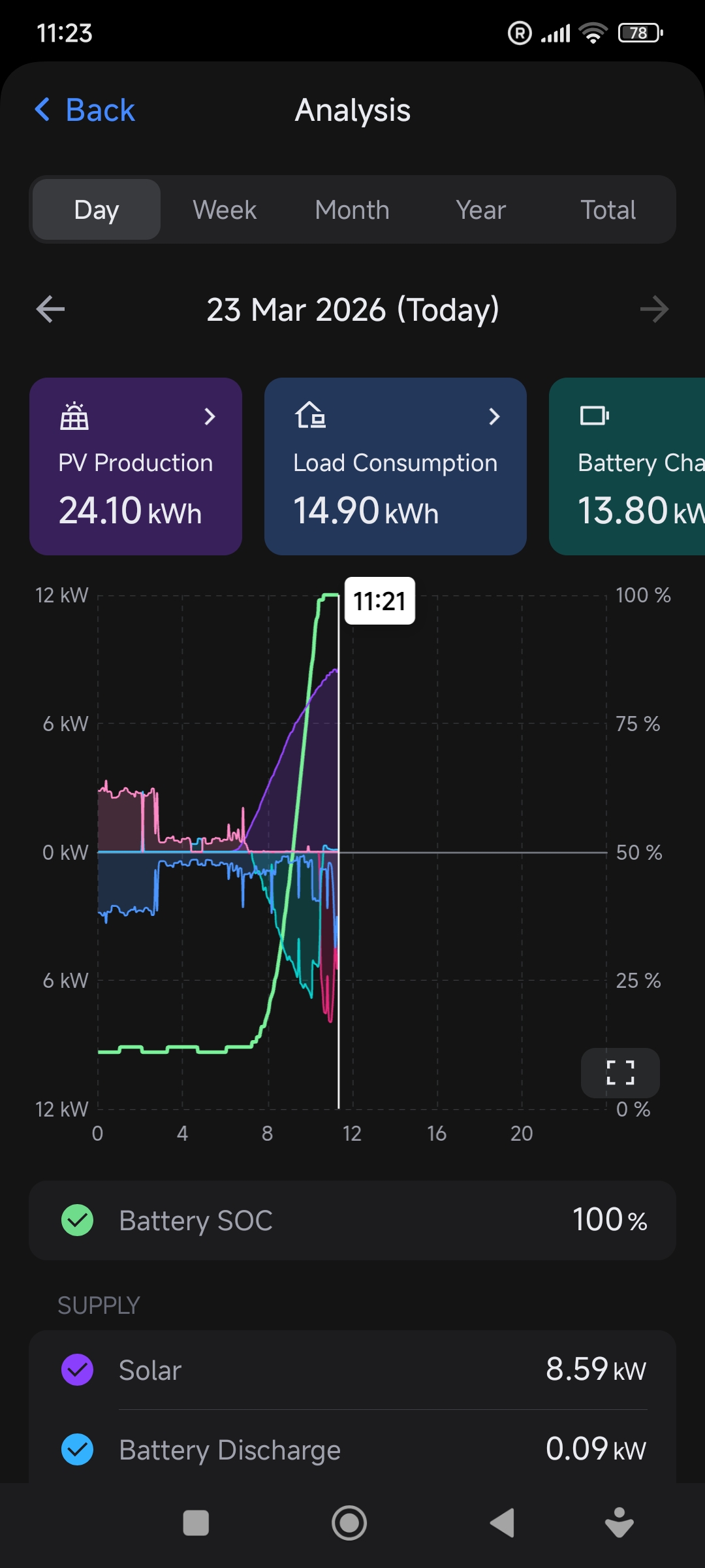 MaterialBarracuda48 wrote: Mon Mar 23, 2026 12:40 pm Your PV keeps charging the battery to 100% SoC.