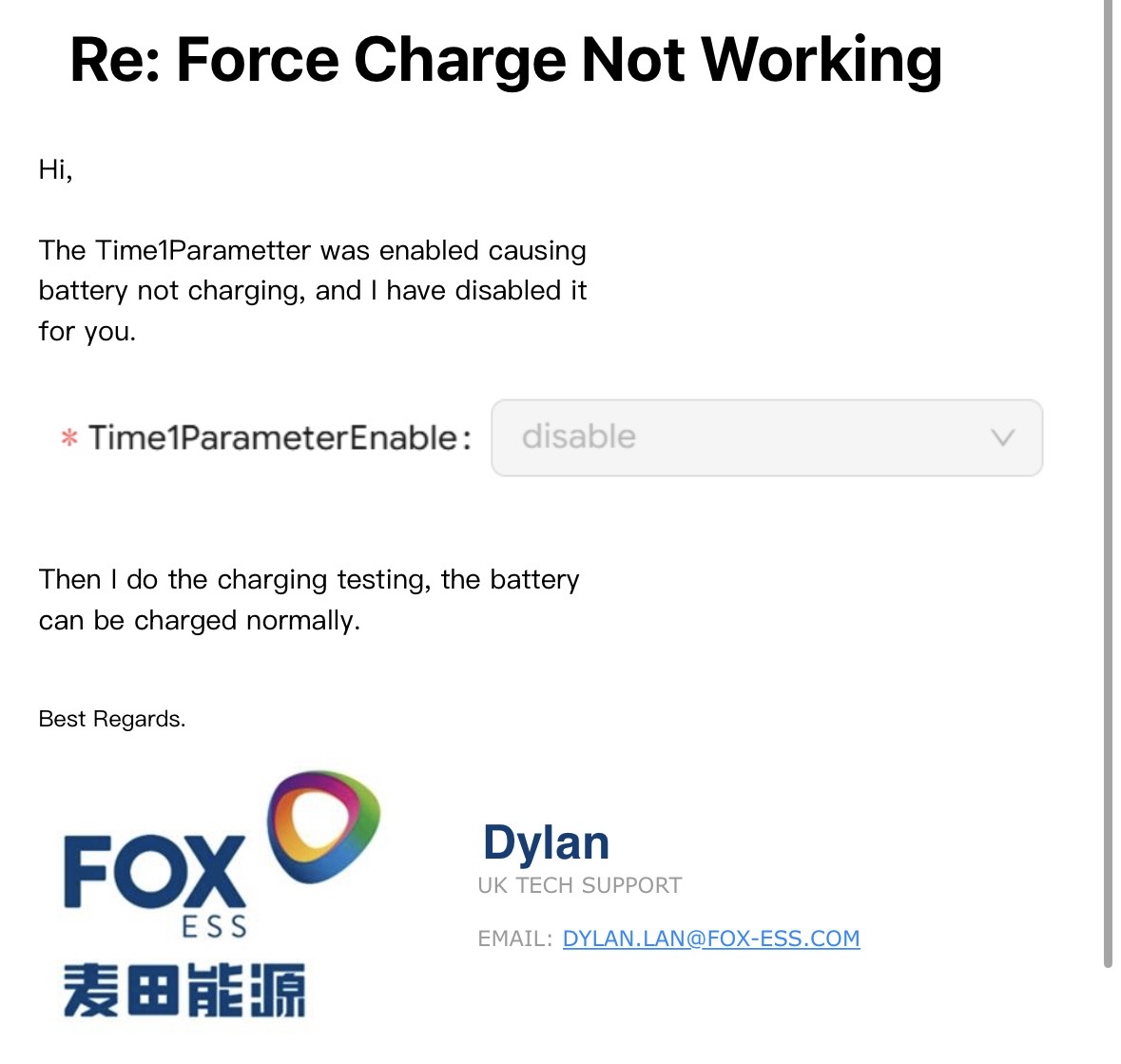Failing that and intervention by Fox, I’ll try setting the two schedules as self sufficient and then set remaining time slots as force charge to see if that makes a difference.