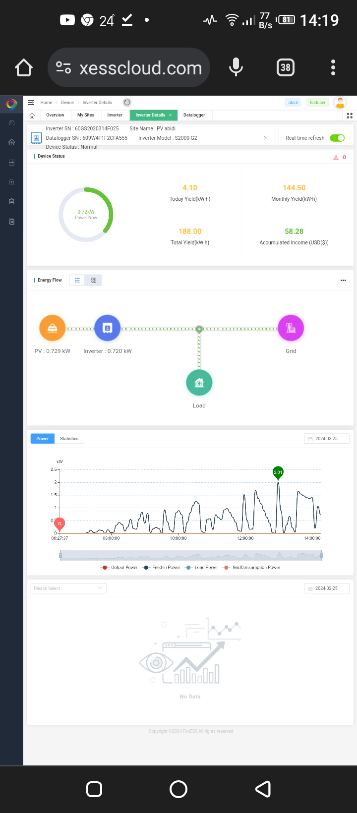 Why does electricity production in my foxess s2000 g2 inverter return to zero successively even in sunny days??