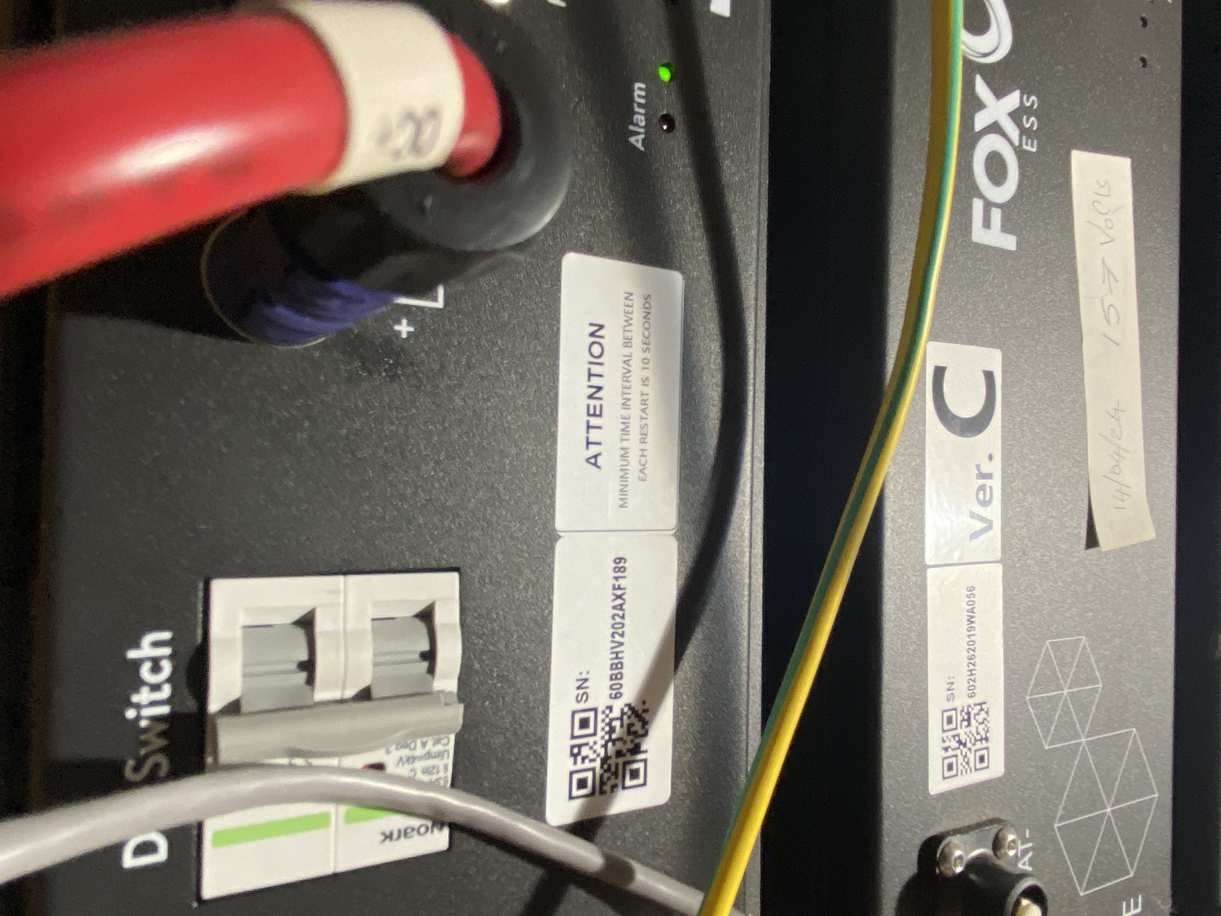 That way you might be able to build a stack of batteries that don't trigger a voltage fault and would allow you to get some charge into the batteries - plus looking at the age of the firmware you need to get the firmware updated as well, which Fox will do if you email them your inverter serial number, but you must first get an operational stack.