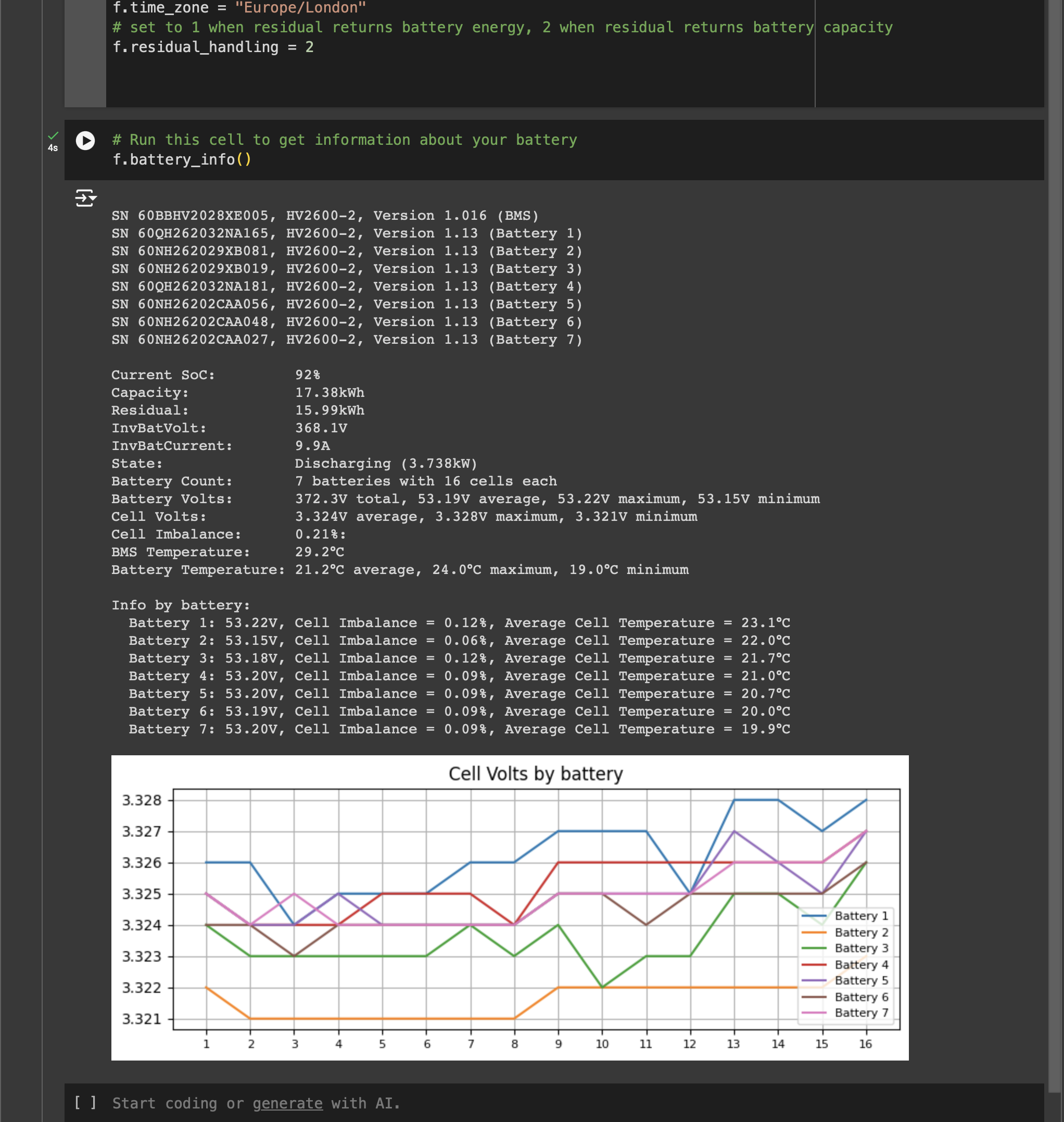 I've ran the battery.ipynb script from Tony's GitHub and can see that I need to set the residual_handling to 2 to get the residual to show kWh remaining.
