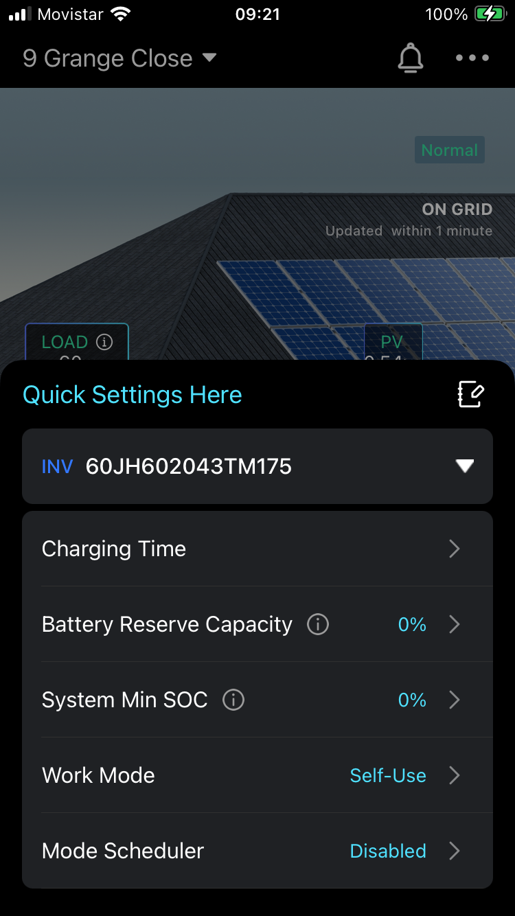 Hello Dave. Been back a week and finally got round to checking the inverter settings directly, using your instructions. I found them to already be at 10%, so I assumed nothing more needed to be done. (For what it’s worth, the app settings are still showing 0%. You mentioned the possibility of Wi-Fi connectivity issues but the app seems to otherwise provide an accurate snapshot of usage/demand).