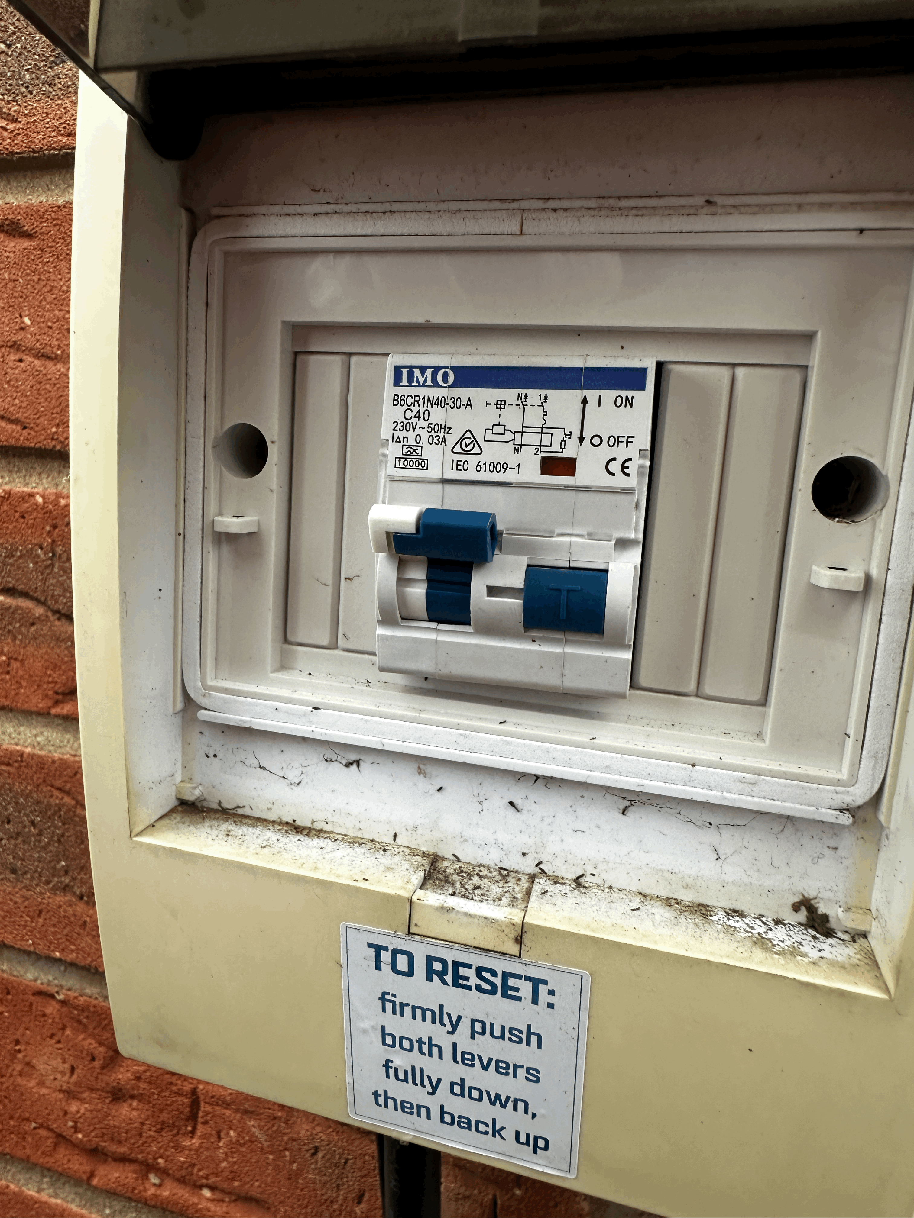 The MCB reset button also doesn't work anymore either, so probably a good idea to get a spark round to switch the MCB and maybe install something like a Shelly EM too!