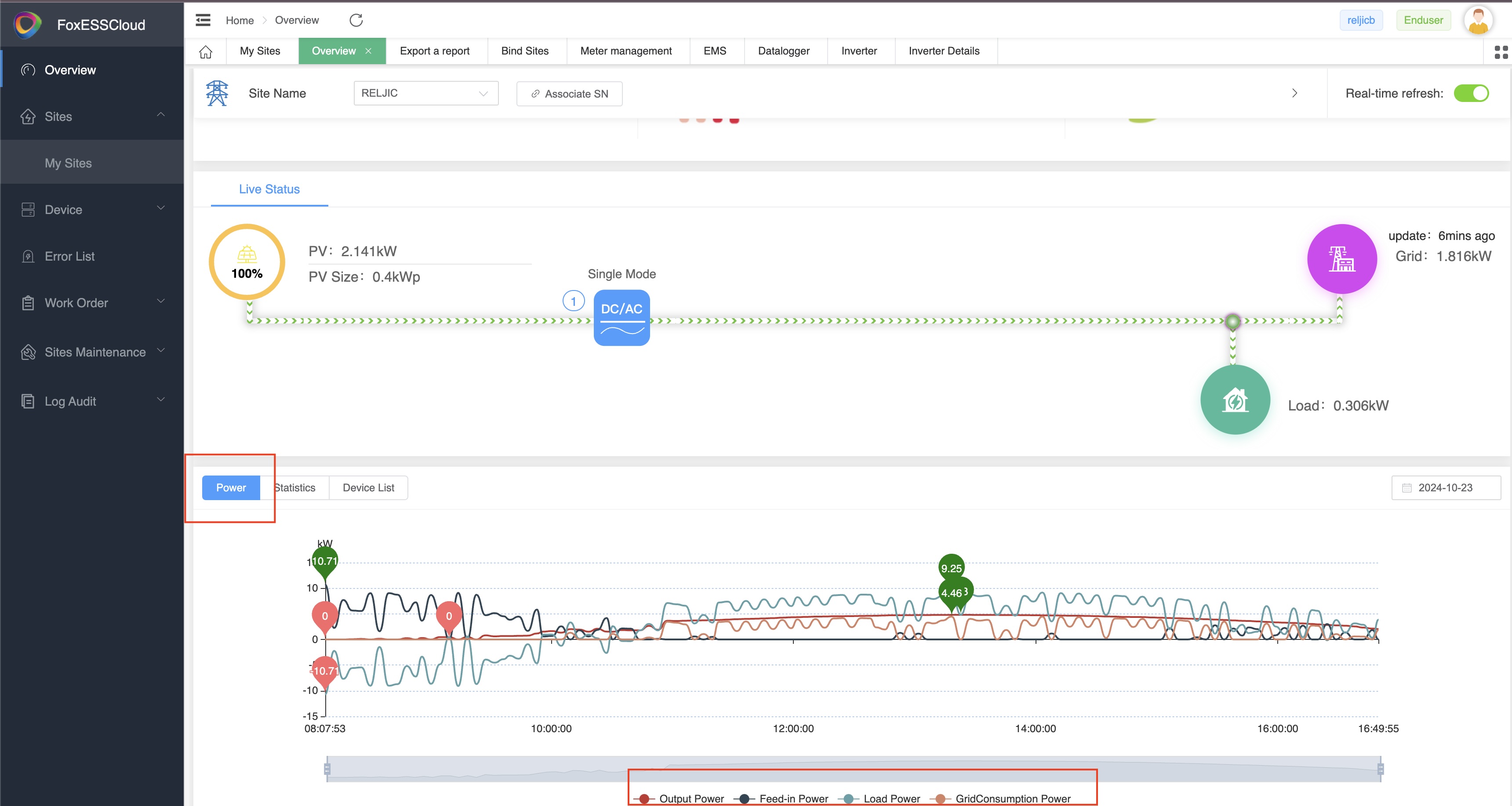I can only see the production of the panels, not the breakdown of how much I consumed and how much was sent to the grid.