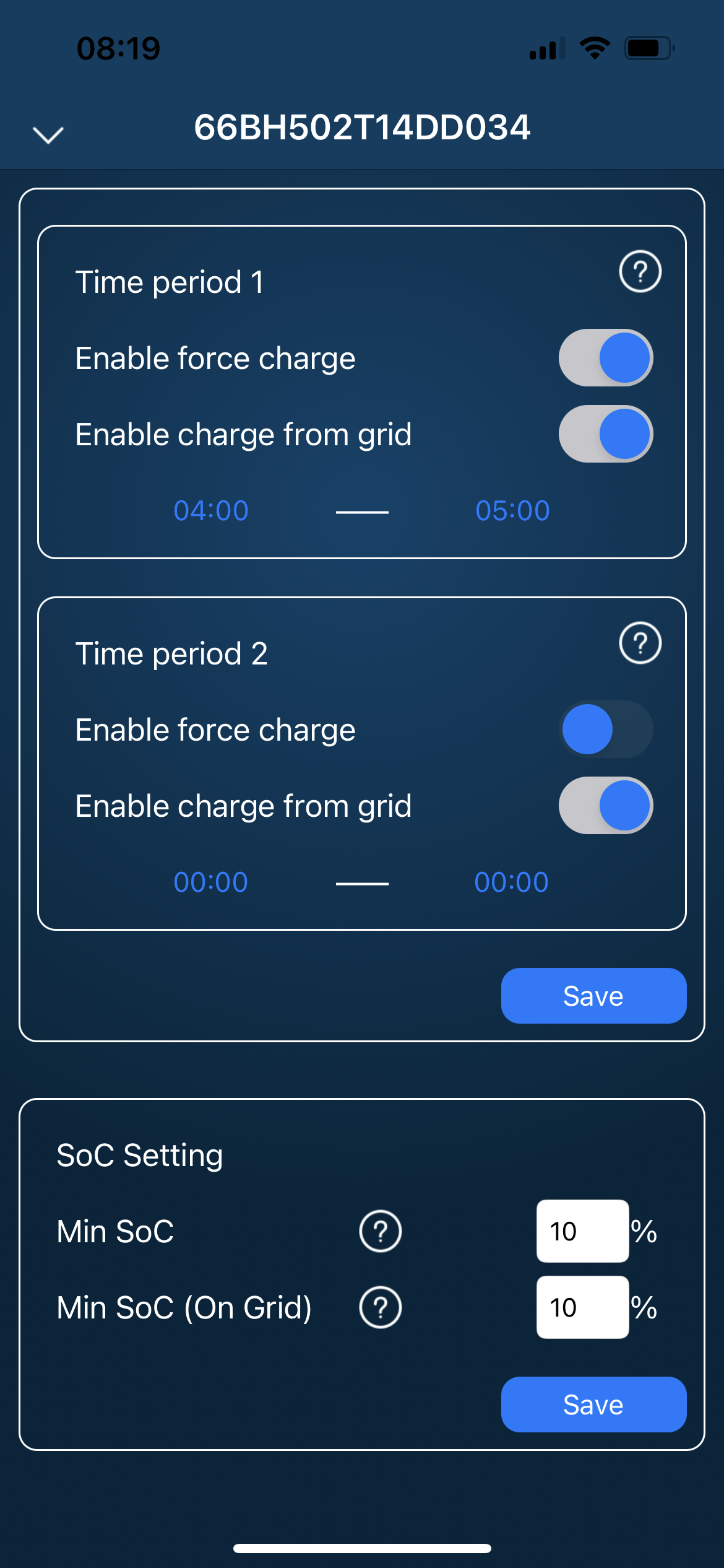 Otherwise, have you got both "enable force charge" and "enable charge from grid" enabled? They are worded very badly.