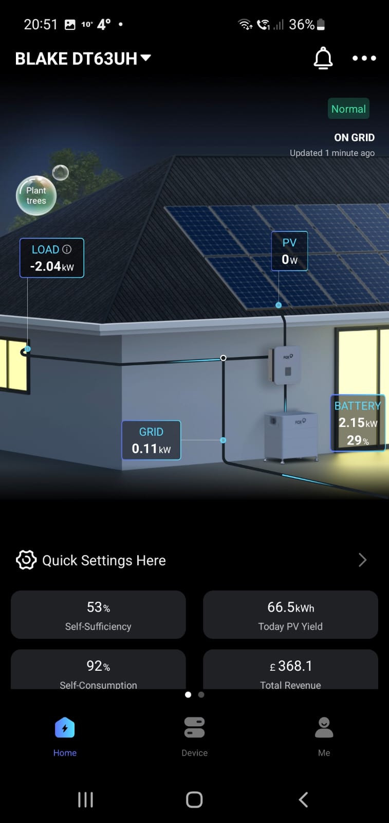 Also attaching a screenshot of the app showing the negative load and the battery charging off the grid (it was dark so definitely no PV generation at the time). The trigger in this instance was dishwasher (EV was not plugged in).
