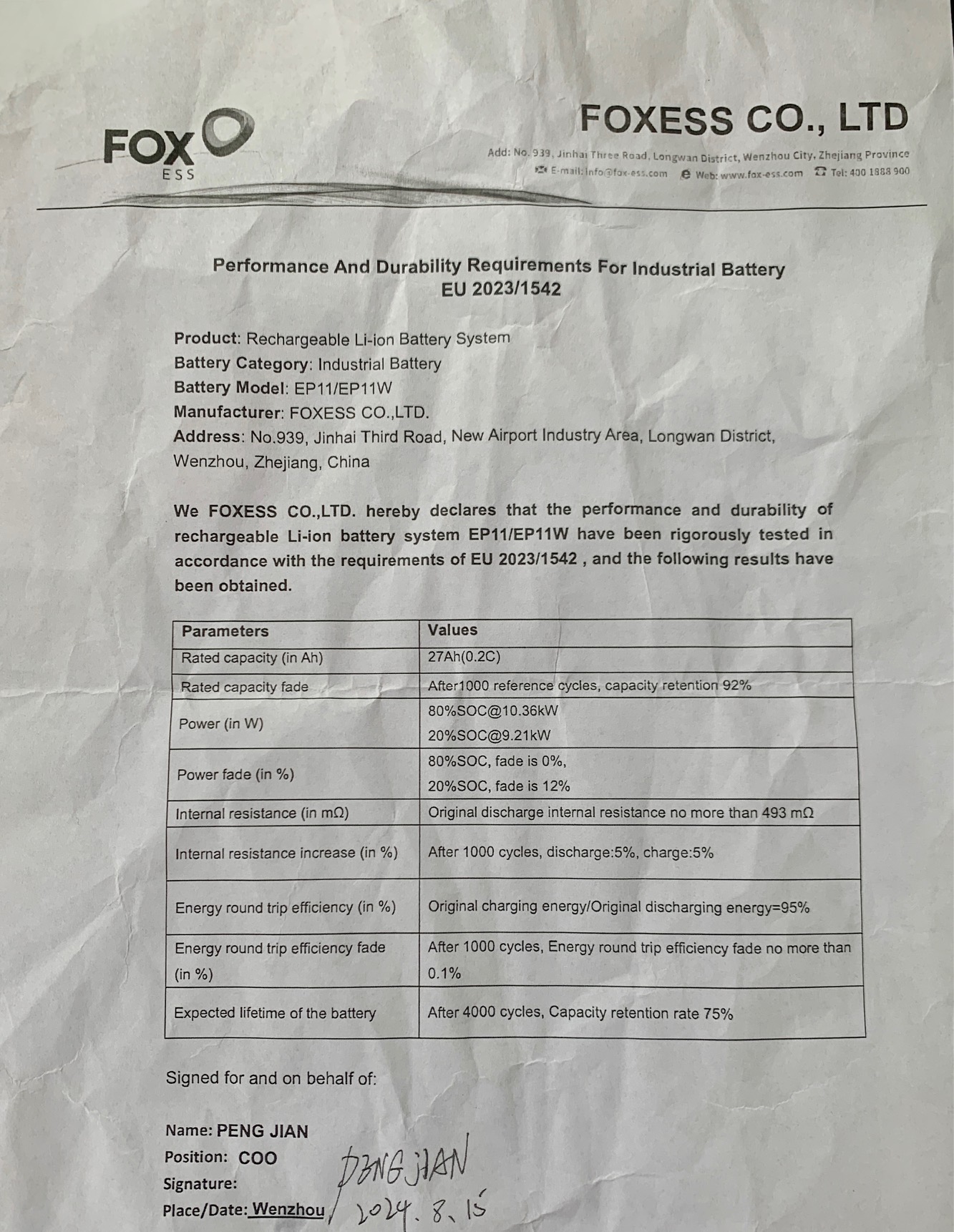 This is the figure given for capacity in Ah on the attached (scrappy) photo of the EP11 EU 2023/1542 document.
