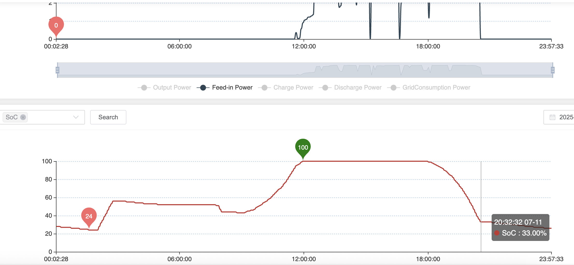 But on a really sunny day (three days ago), where the solar system is running full tilt at FD start time, the solar panels go straight to the grid for over 90 minutes until the sun drops a bit, the FD time seems to be recognised and so discharge starts to happen even though the solar is available to provide all the FD power ?