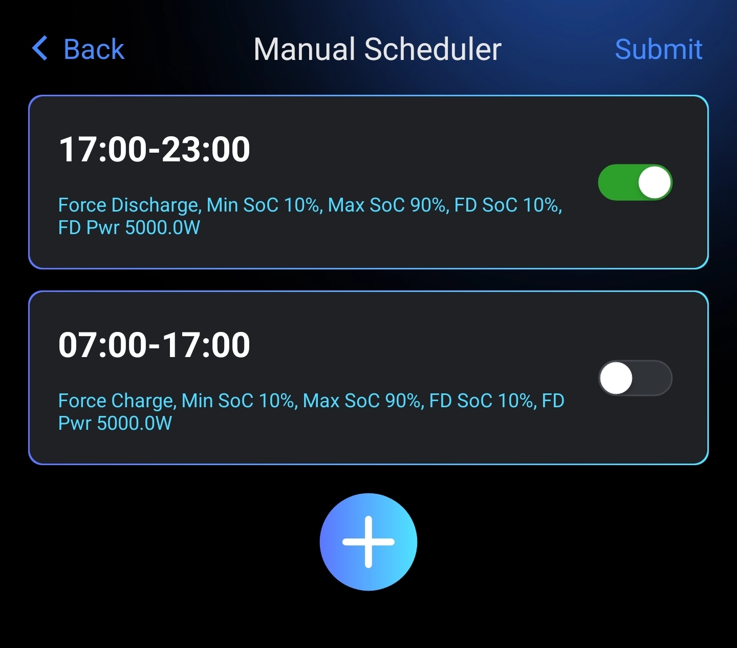 These are my forced discharge parameters during 1700 and 2300 hrs.