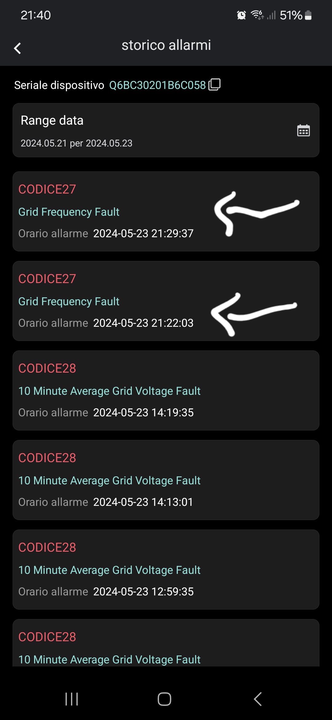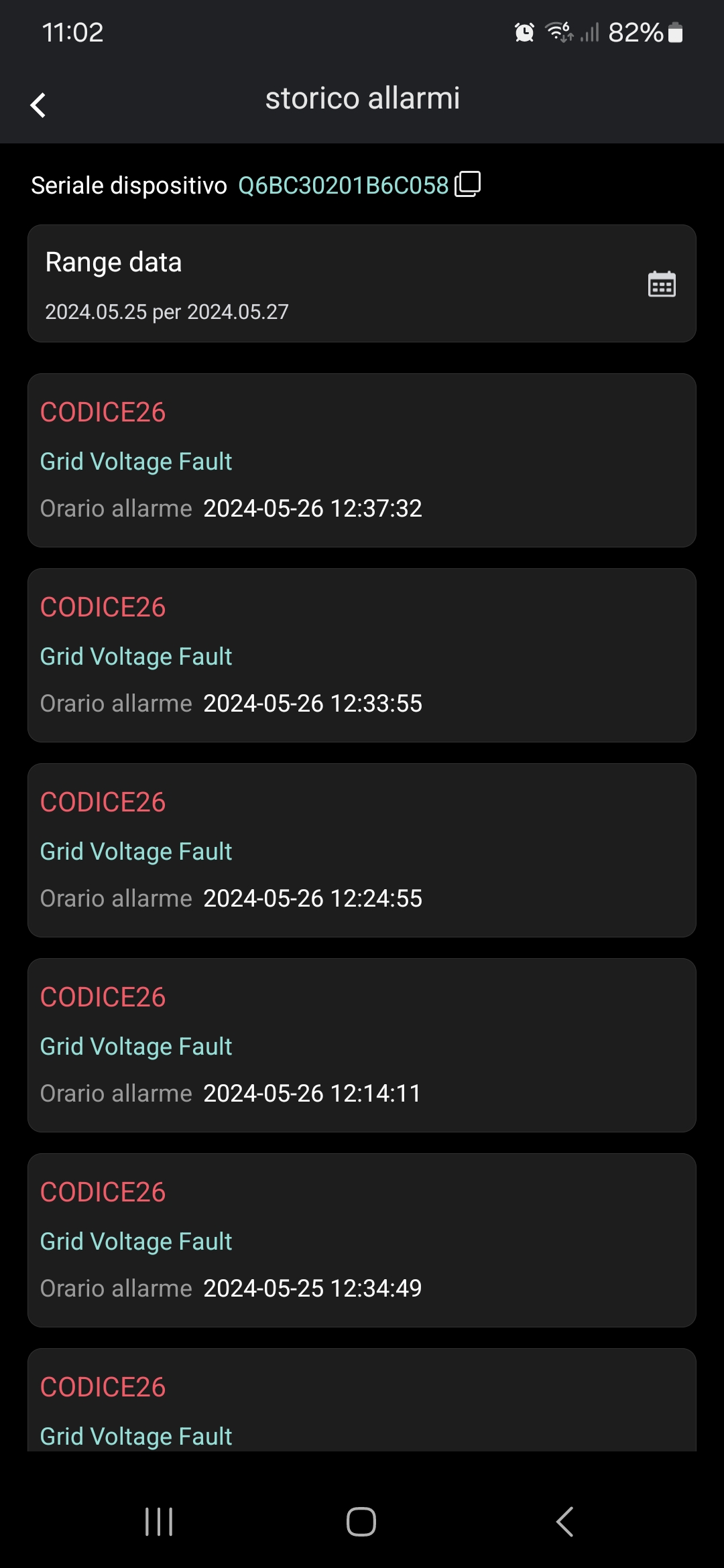 here I am. so I get the usual grid voltage fault errors punctually when I enter a lot. at this point I really don't know. I'll leave it like this. cheerful screen