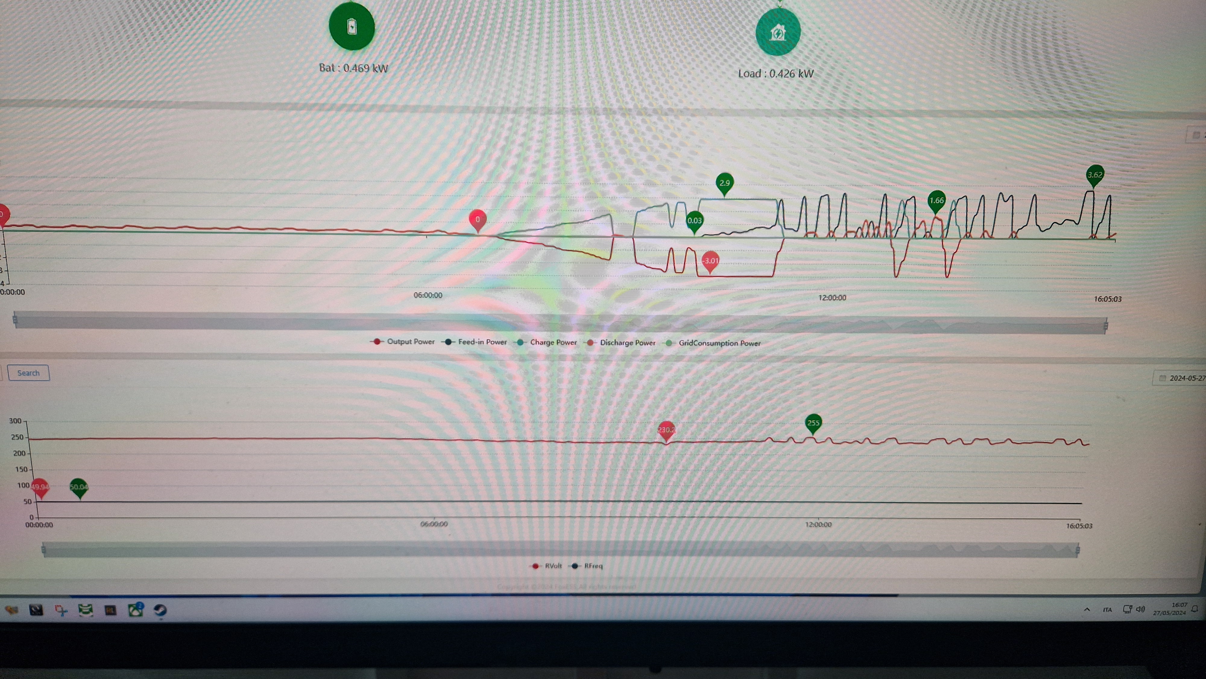and nothing I have again grid frequency fault error ugh. I attach screen? the change of the 10min avg to 257 I imagine it has nothing to do with the frequency