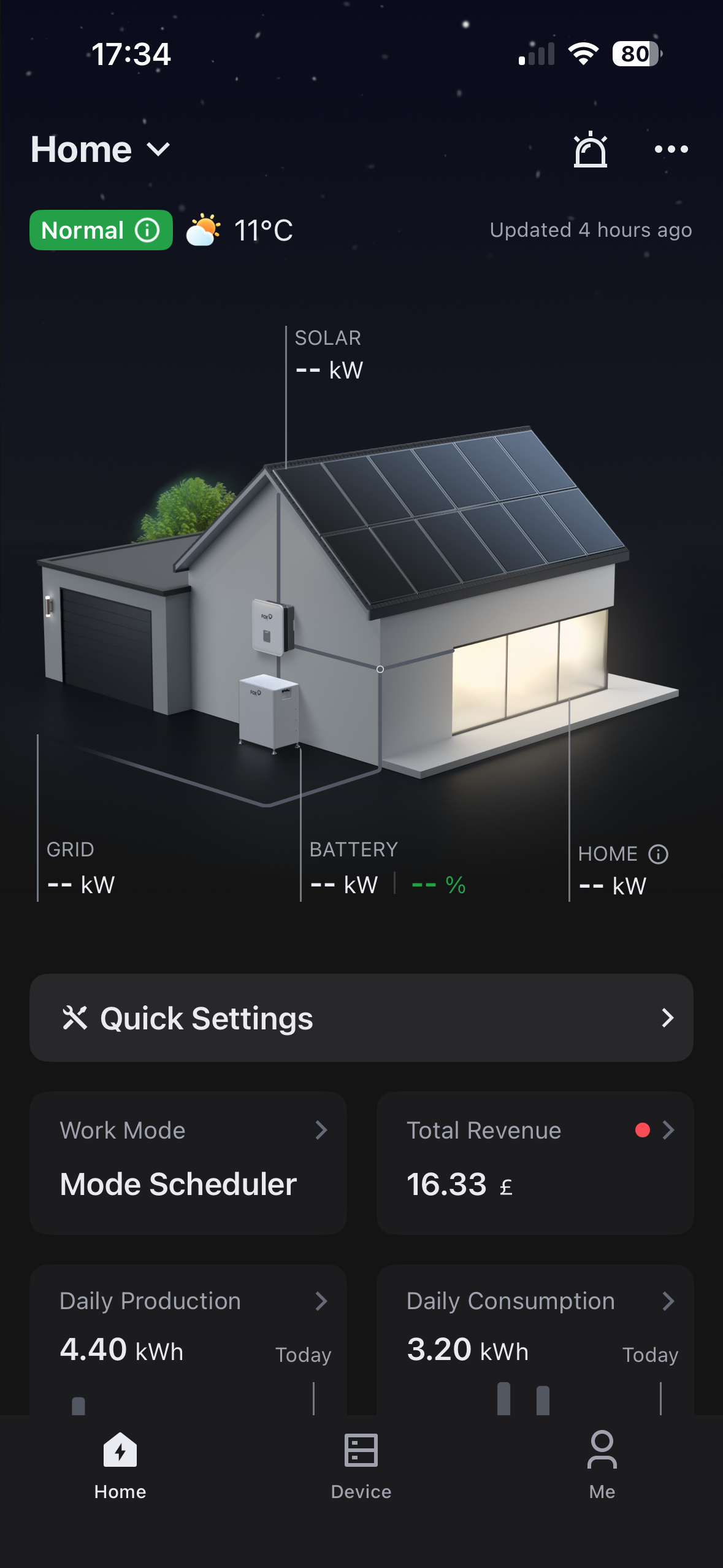 ). I can see from the Octopus app that I'm exporting around 4.7kW to the grid, so panels/inverter/etc. seem to still be functioning.