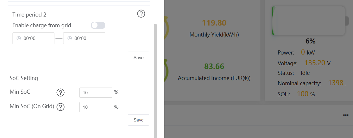 Der Min SoC wurde wie empfohlen auf 10 % eingestellt.