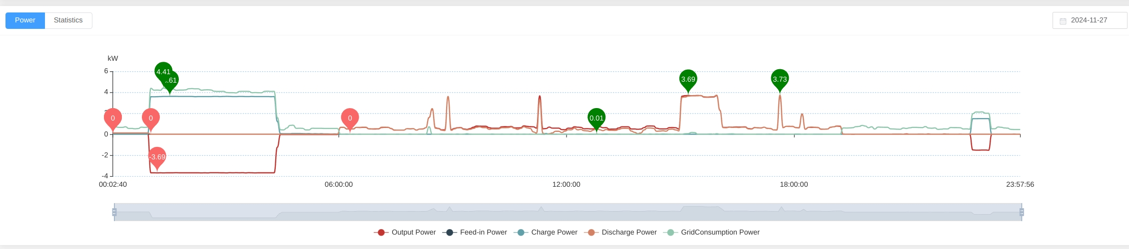 I have the system set up to charge between 1am-6am and on self-consume setting, min soc: 15%.