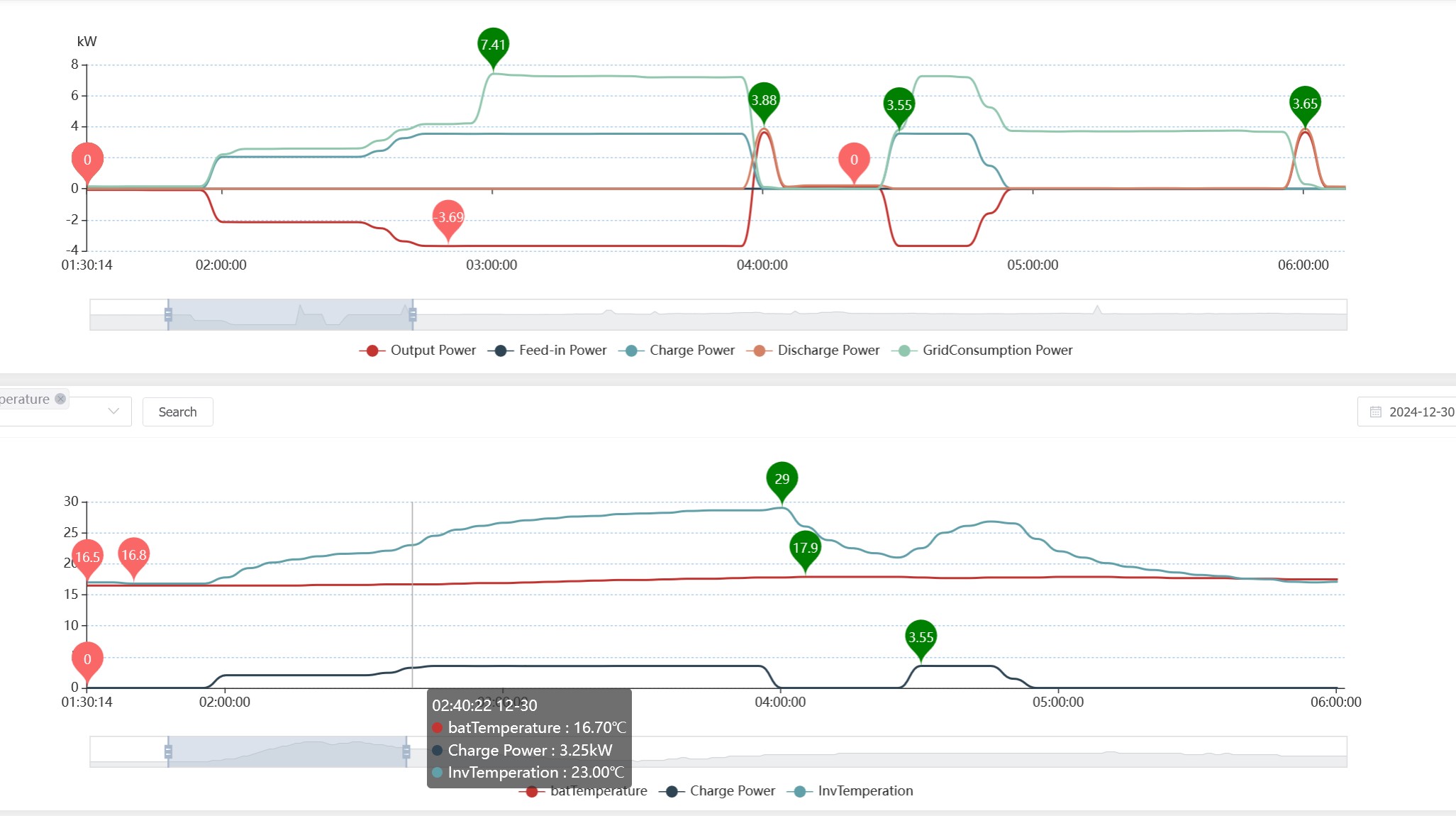 On 29/12/21 Battery (web) went from 15.8 to 16.2 whereas inverter went from 16.8 to 23.