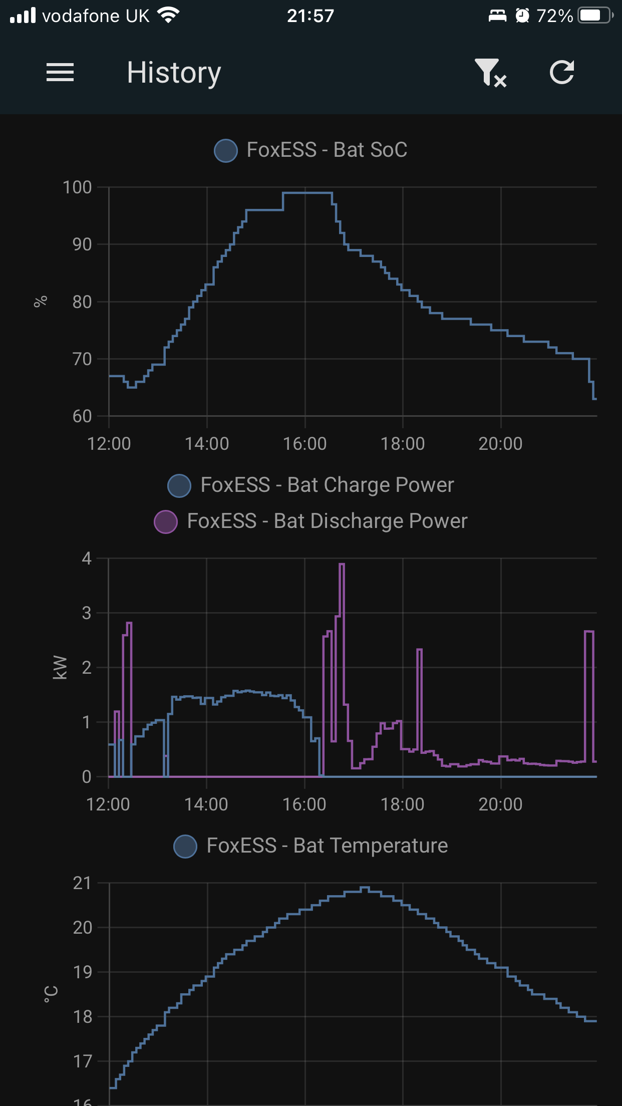 Not sure how to in-line the attached photo. It shows that the soc hits 99% but charging continues around 1kw for about an hour. That’s using home assistant for the graphs. The data comes direct from FoxEss cloud and matches what I see in the app.
