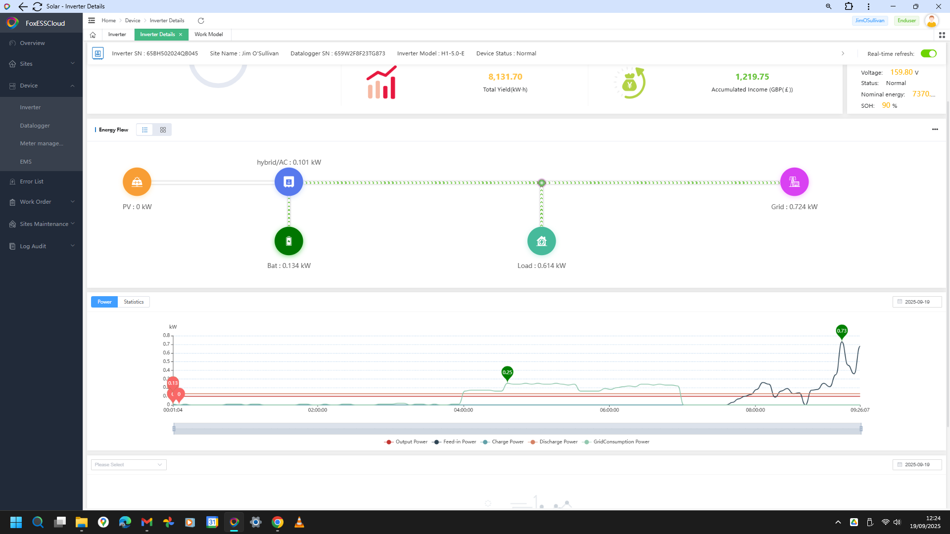 Since last night the power flows from Foxess have been behaving bizzarely, whether viewed on Foxess app, website or Energy Stats app. Last night when force charging the app showed the energy all going to load, and none to battery, although the battery was actually charging. This morning there is no solar production showing. It is set to feed-in priority and lthough energy is being exported, the display suggests this is coming from the load and battery. I don't know if it is related, but yesterday a Foce Charge session failed. I discovered that the Max SOC had been set to 10% in most of the strategy periods (not by me). When I changed this to 100% it resumed charging. Is this just me, or is there a wider issue?