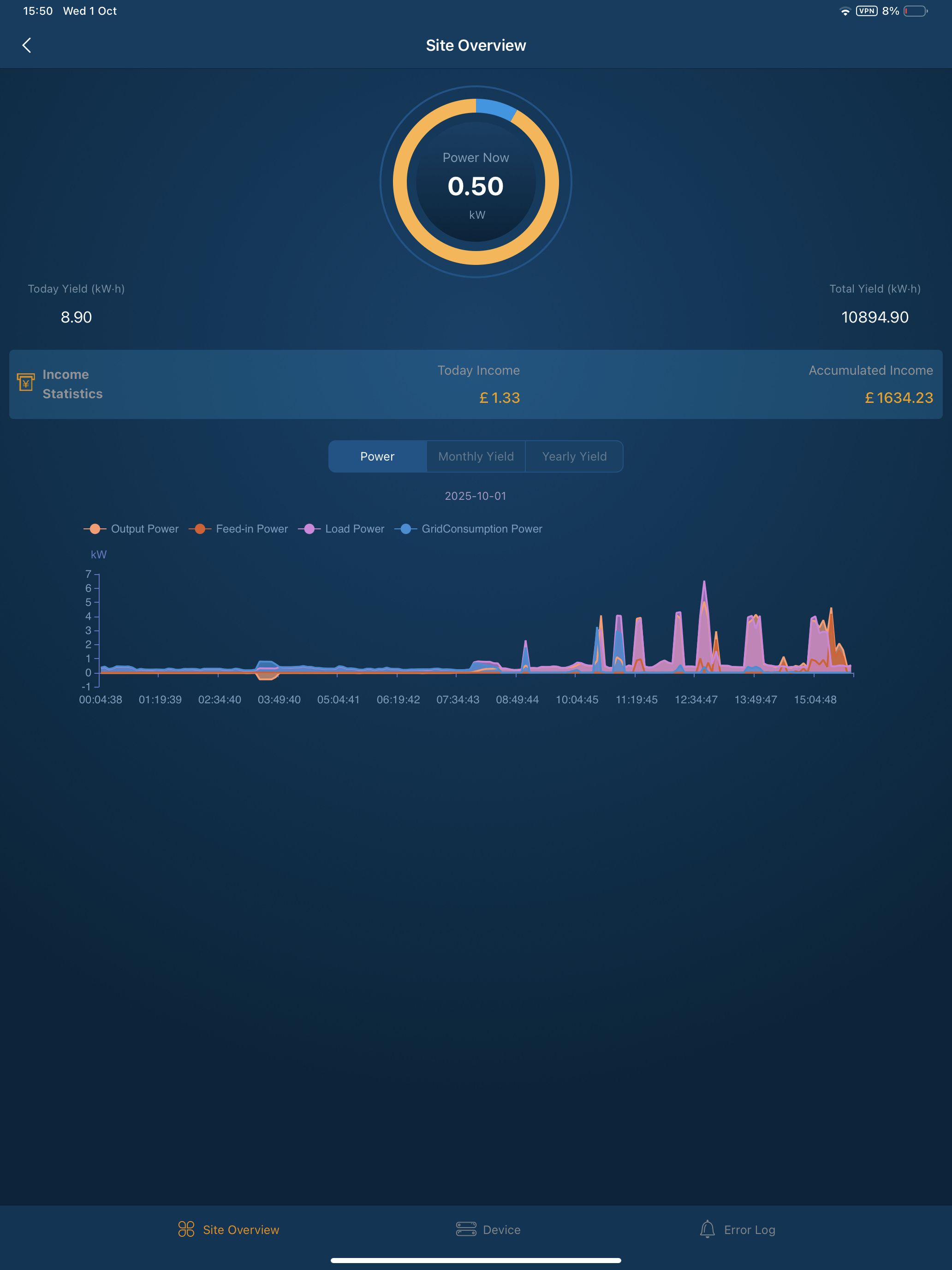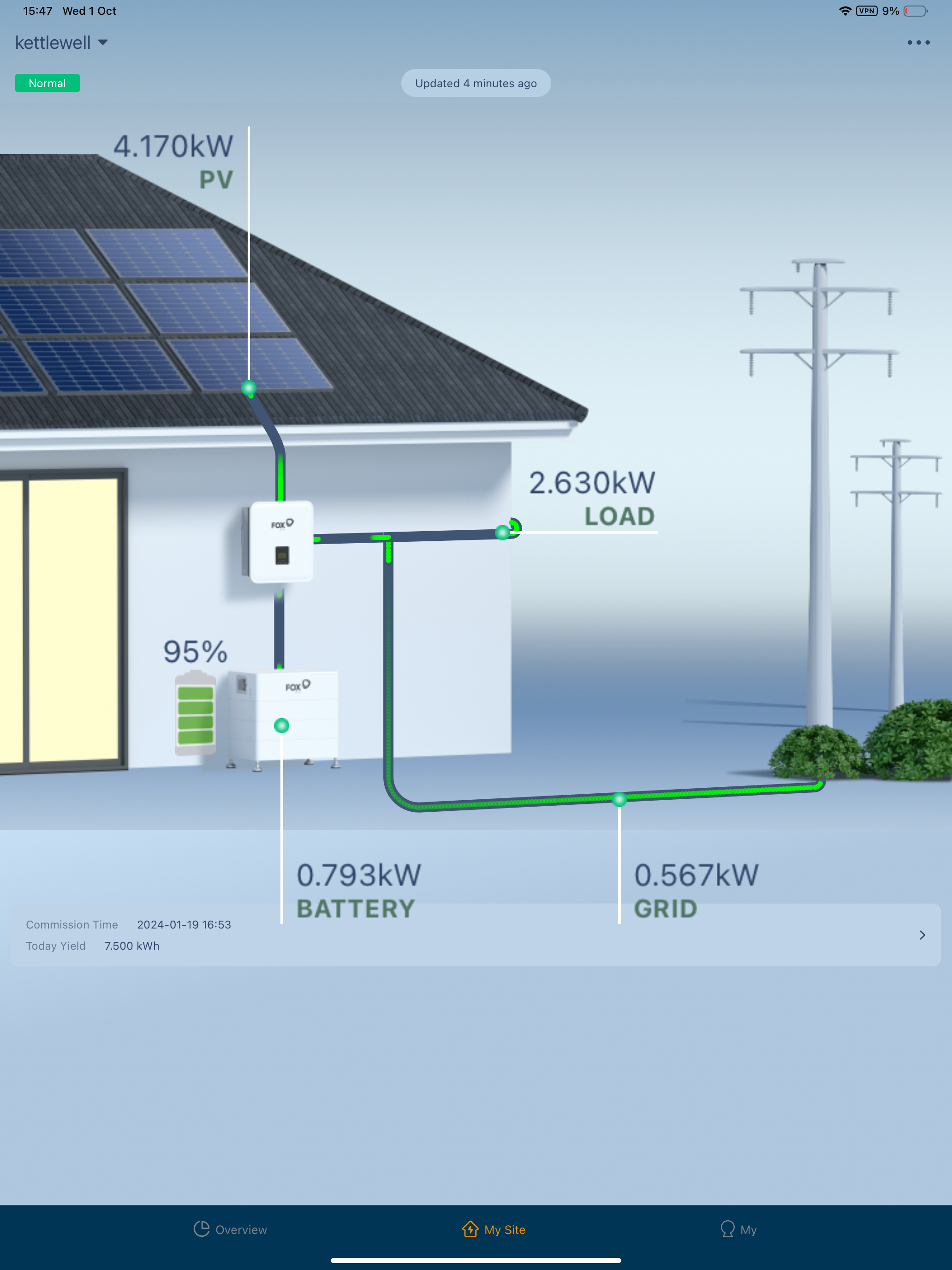 I can see you are using the old Foxcloud app, that app is no longer supported by Fox and the new one is a huge improvement - if you search for Foxcloud2.0 that is the new app and will give you a lot more information - not least the graphs show all the information together to see how load, battery, grid is being used .
