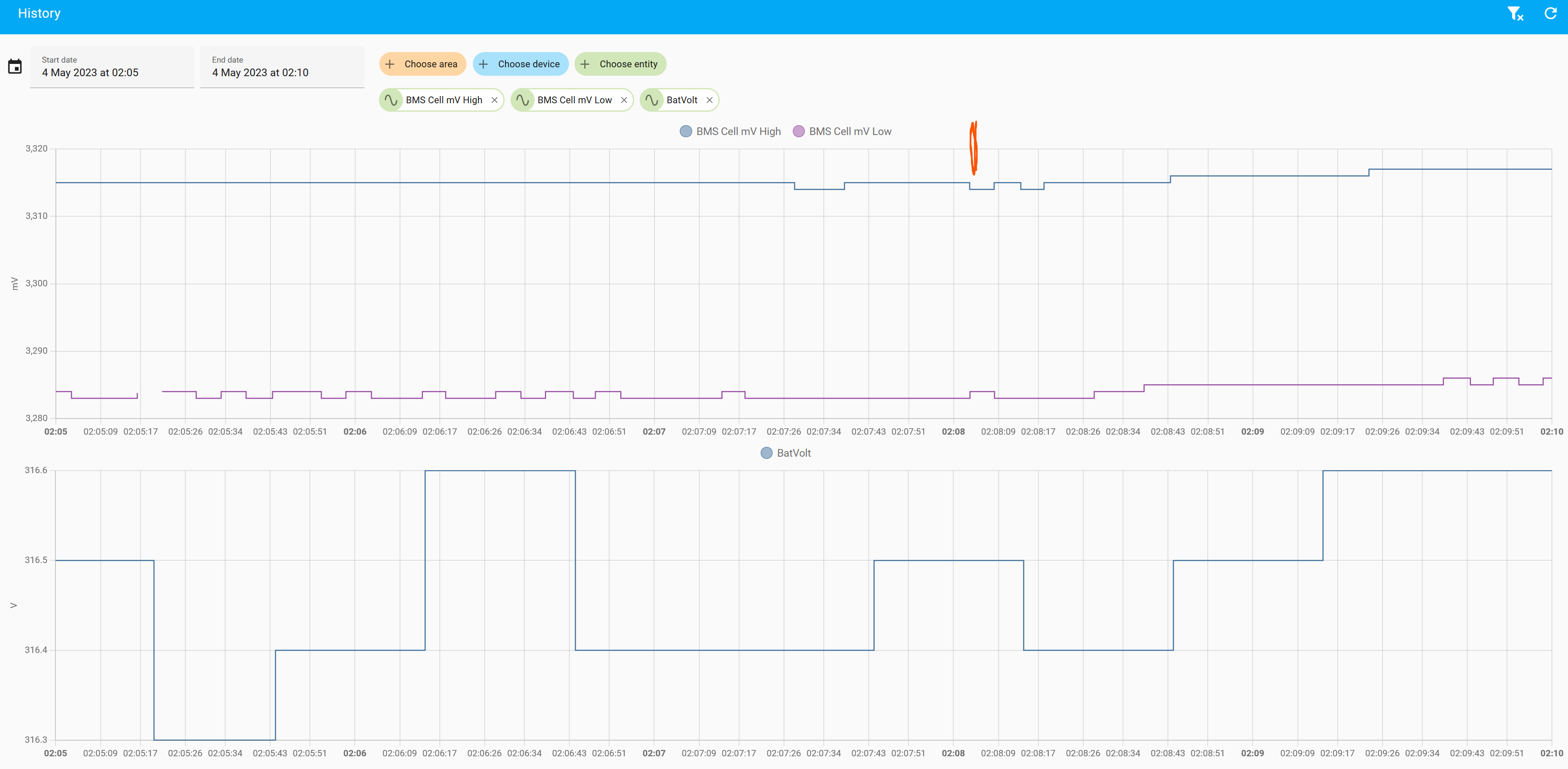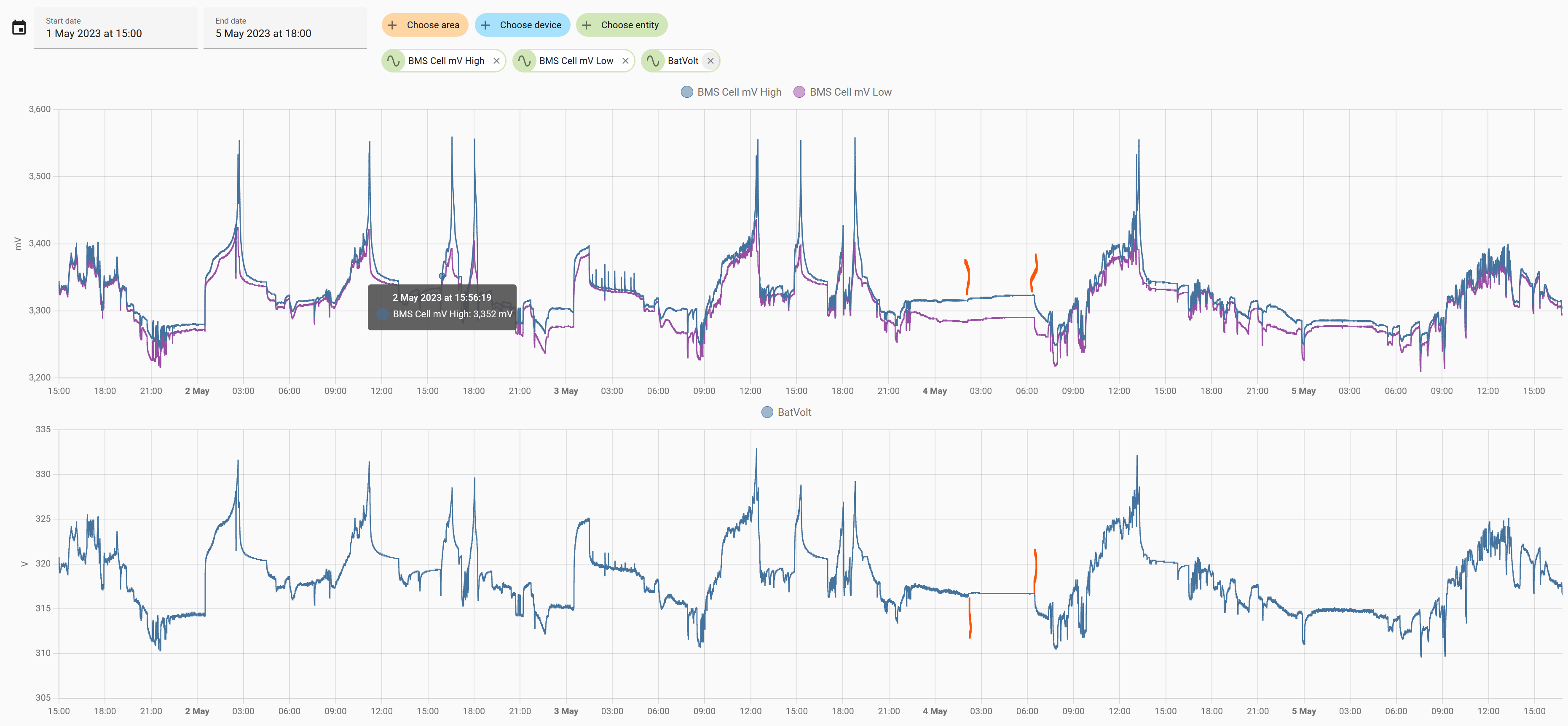 For what it's worth the battery voltage trace in Home Assistant shows no abnormalities, it simply flatlines once the BMS goes into the error state. Anyone got any ideas about what might be causing this and what I could / should do about it? In my view equipment like this needs to be utterly reliable, and it's recurrence after moving to the latest firmware starts to suggest the presence of an intermittent hardware fault?