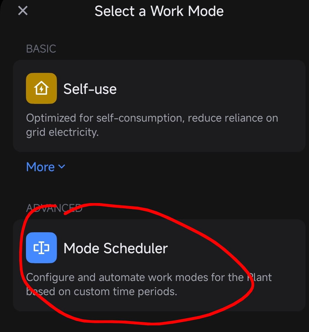 I have 2 scheduled work modes with different SOC settings which I set using the previous app.
