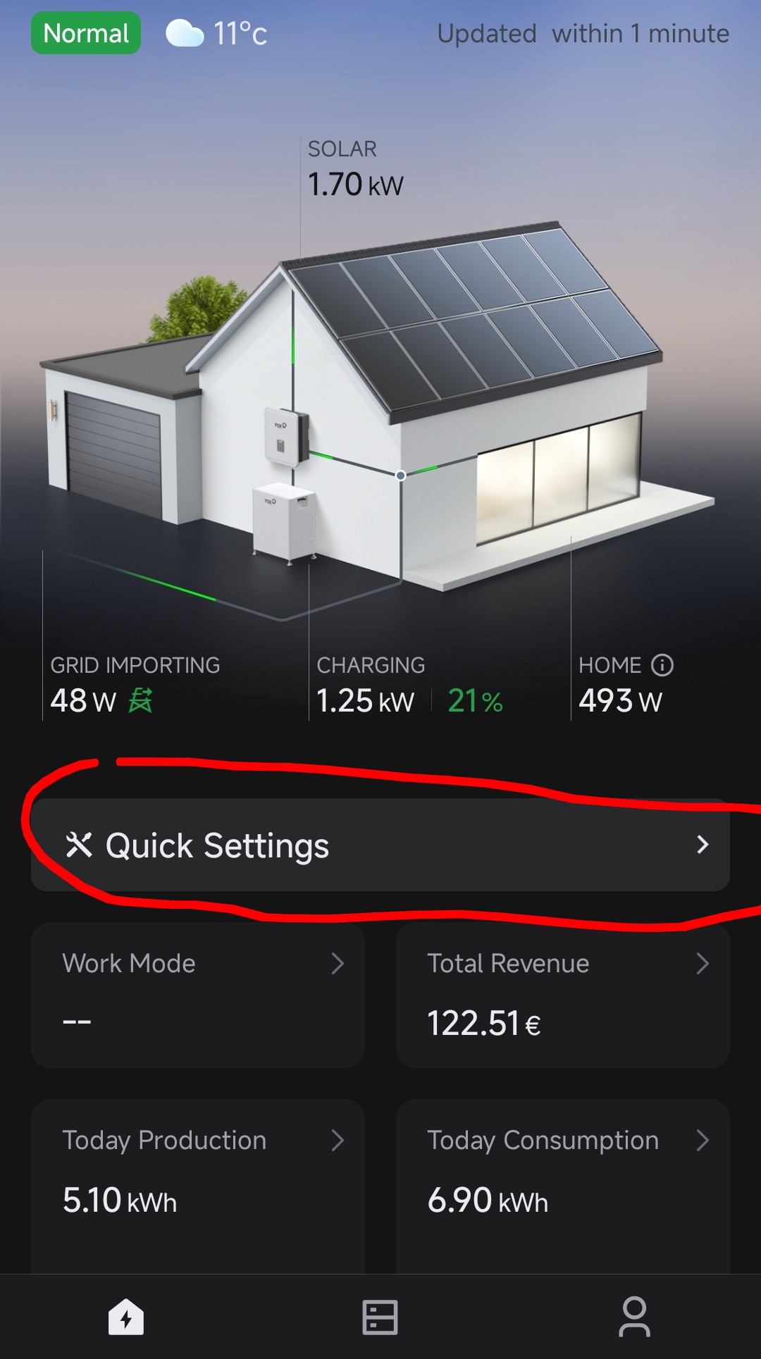 I imagine the battery control settings immediately under Quick Settings relate to the current running work mode?