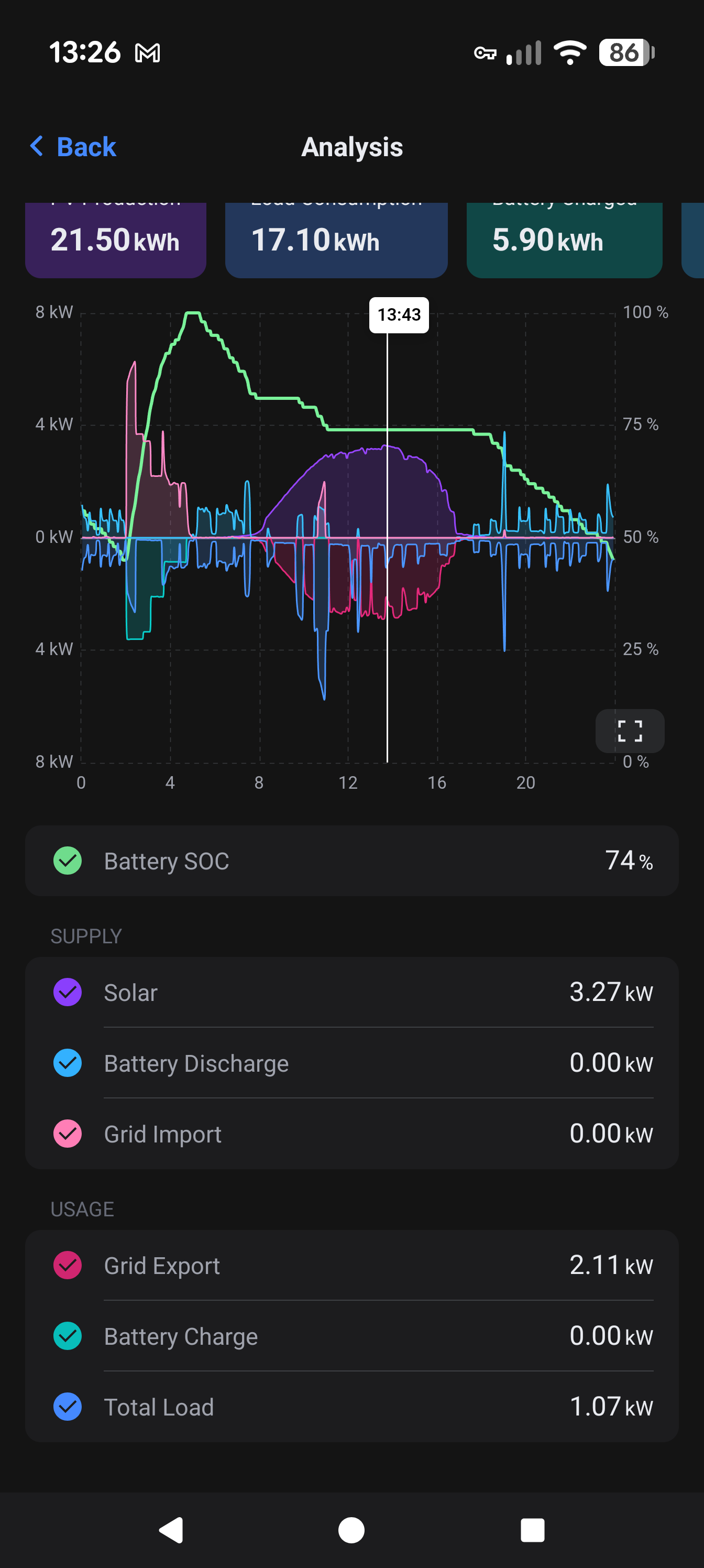 Later in the year, you are going to see more battery charging once you breach your export limit, as will I also.