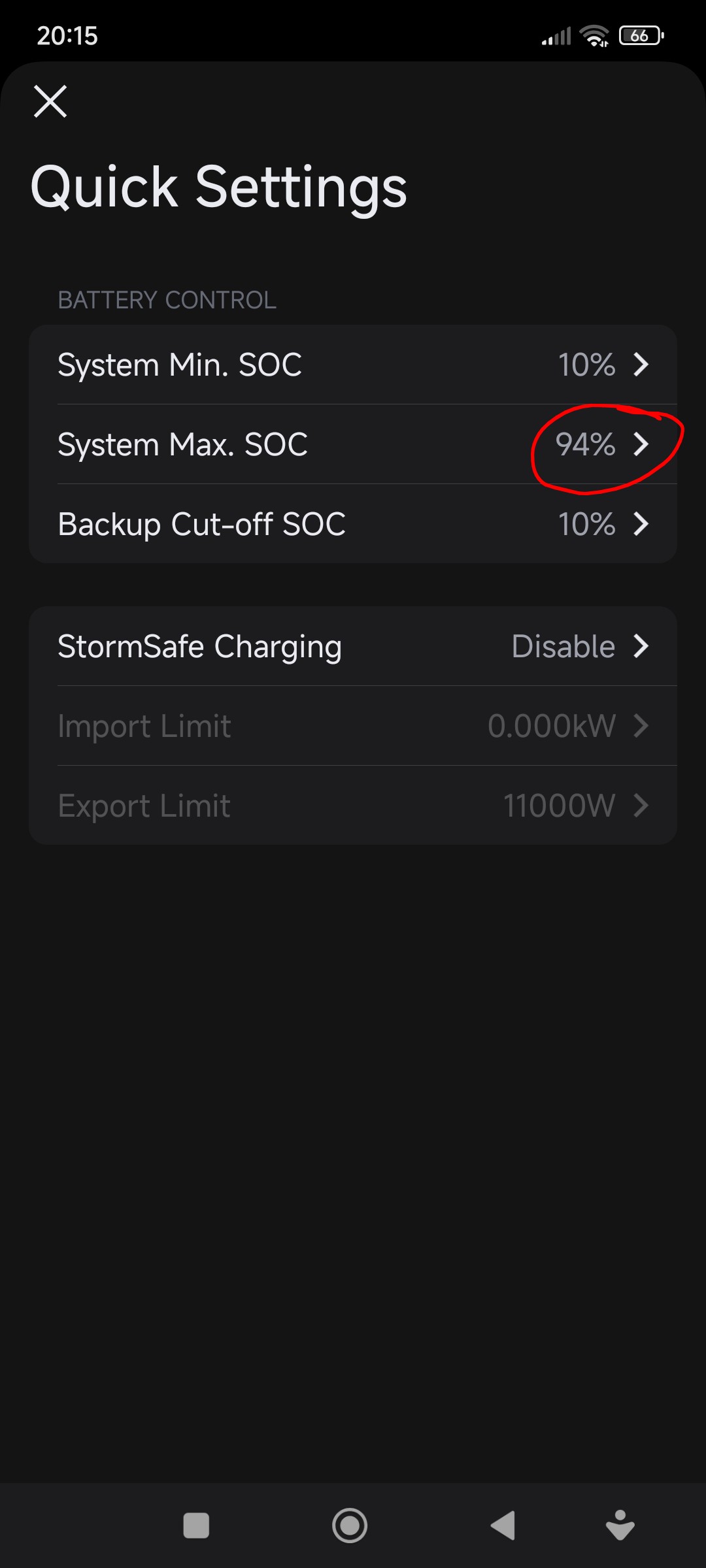 I see that the new udate has arrived on V. 2.2.4. Incredible result max SOC is set to 94%. But the battery charges to 100%. What is happening with the update. My setting before the update was set to 100%. Thanks and all the best