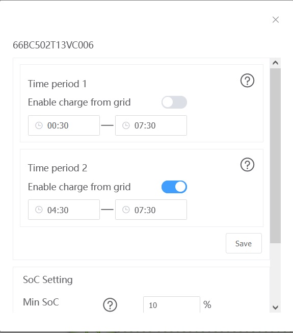 What do you have set for the charging time periods?