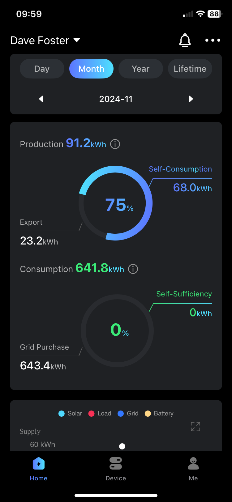 That's what I thought at first but I can't get 310 kWh out from a battery I've only put 200 kWh into. The battery discharge rate based in drop in SoC looks fine - but the reported power output does not. I'm not particularly bothered as the system is working fine in practice - but it would be nice if the numbers made sense.M.U. wrote: ↑Wed Apr 09, 2025 5:43 pm There is probably no error: