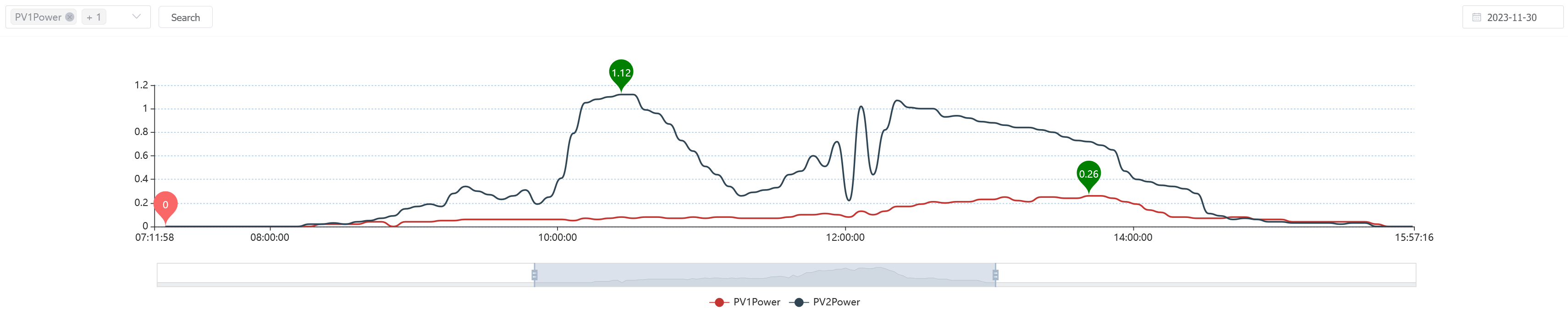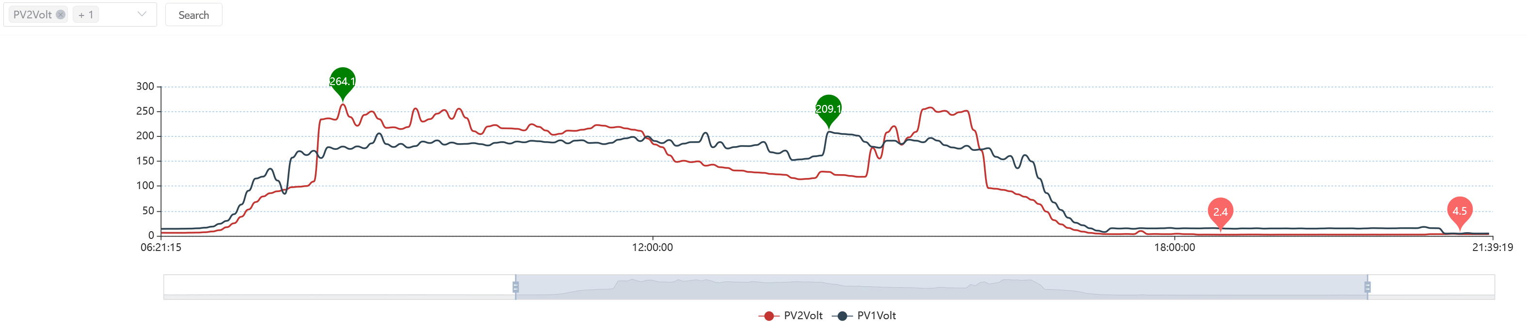 Voltage You need to do them separately though, as the portal only has a single Y-axis so if you have say, 200V and 1.2kW, the Power readings barely show up