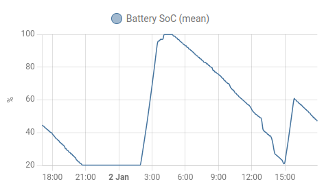 If there's not been much generation through the day and the battery is low, I want to top up at the day rate before the more expensive peak rate cuts in between 4pm and 7pm, not to 100%, but enough to avoid grid consumption at the highest rate.