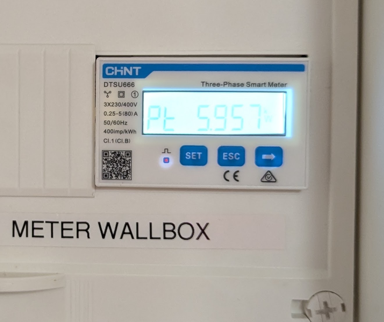 Photo of the first Meter (after which the Wallbox is installed) showing the same consumption as the GRID Meter