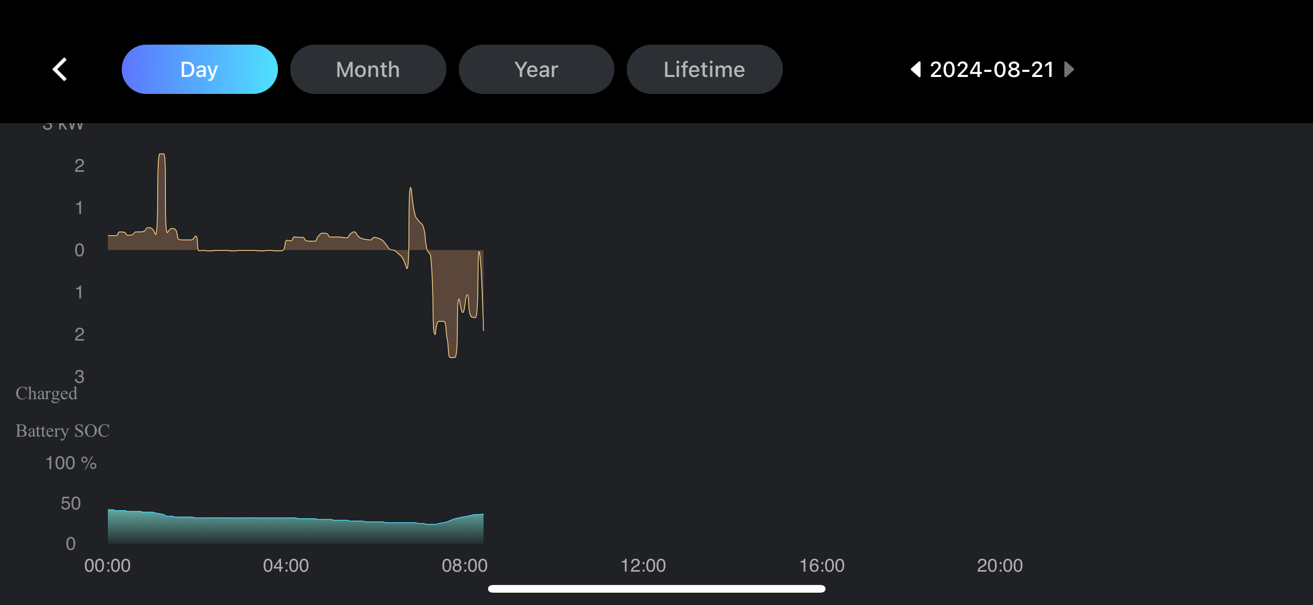 the graph that the battery did stop discharging during that period (it just flatlines, and I appear to have switched to the grid) but the battery itself didn’t charge.