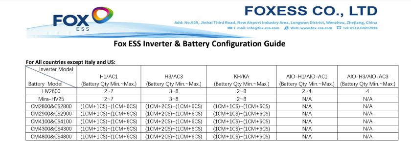 official foxess data sheet to confirm how many hv2600 per inverter type